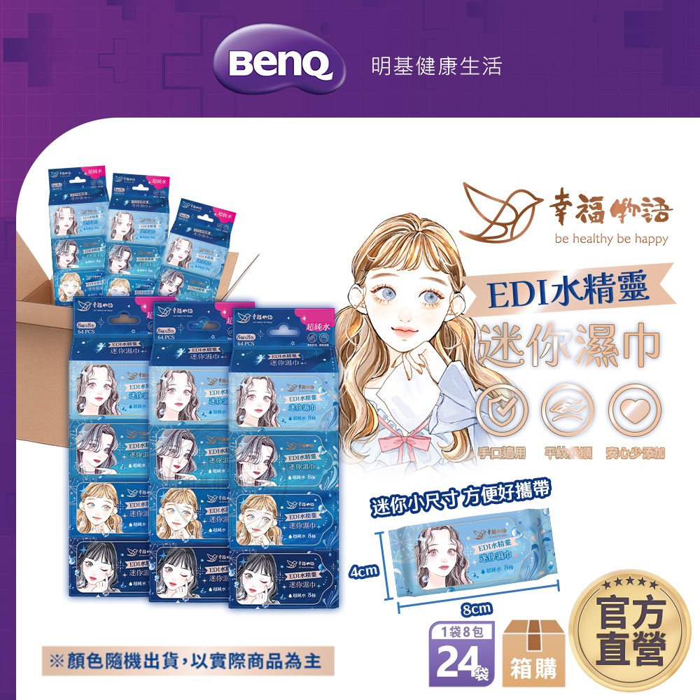 幸福物語 迷你純水濕巾 箱購 192包/箱 濕紙巾 純水濕紙巾 迷你濕紙巾【BenQ 明基 健康生活】EDI水精靈|1箱192包WipesBenQ 明基 健康生活官方直營店