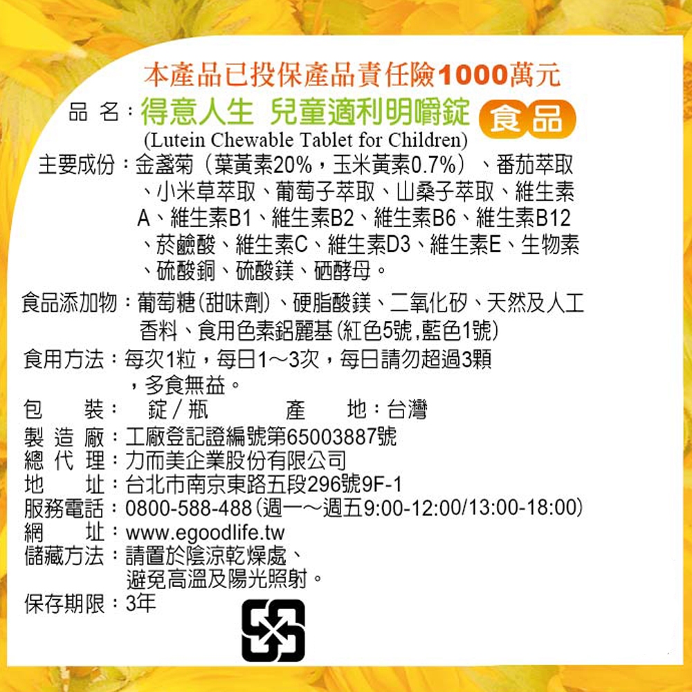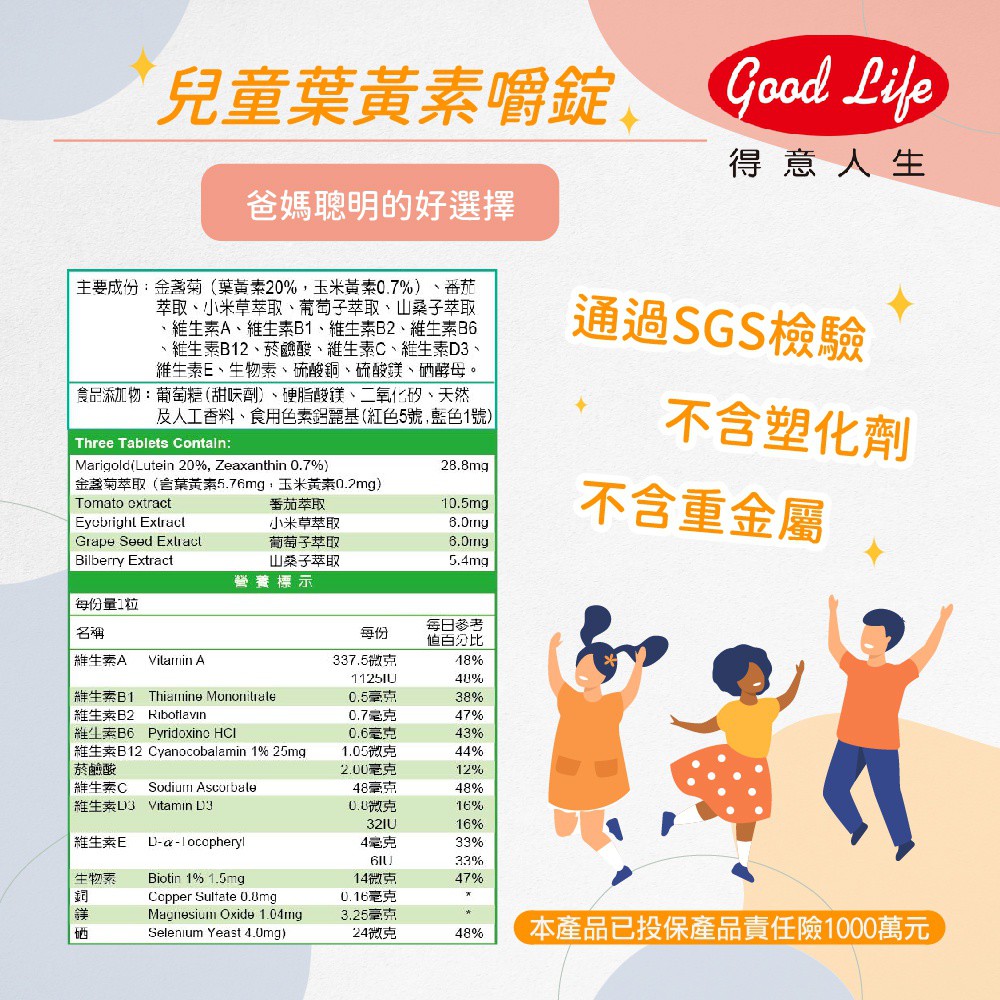 【得意人生】兒童適利明嚼錠(含葉黃素)(60錠/罐)[買3罐送兒童牛奶鈣60粒] 金盞菊/葉黃素/玉米黃素1入|3入 送兒童牛奶鈣60粒Baby Vitamins & Supplements《Goodlife得意人生》