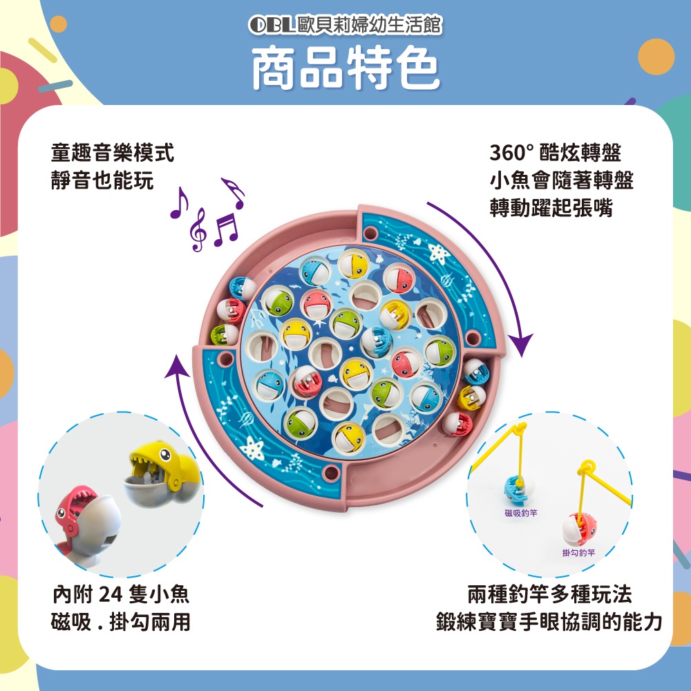 電動釣魚盤 旋轉釣魚盤 兒童專注力訓練 磁吸 玩具 電動釣魚機 磁性旋轉音樂電動 釣魚達人 《OBL歐貝莉》櫻花粉(24魚 磁吸+掛勾釣竿)|薄荷綠(24魚 磁吸+掛勾釣竿)Educational Toys【OBL 歐貝莉】歐貝莉婦幼生活館