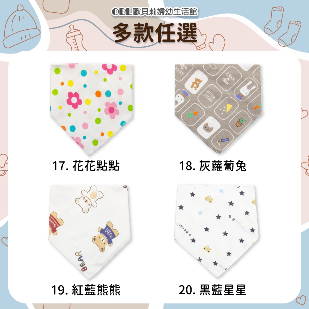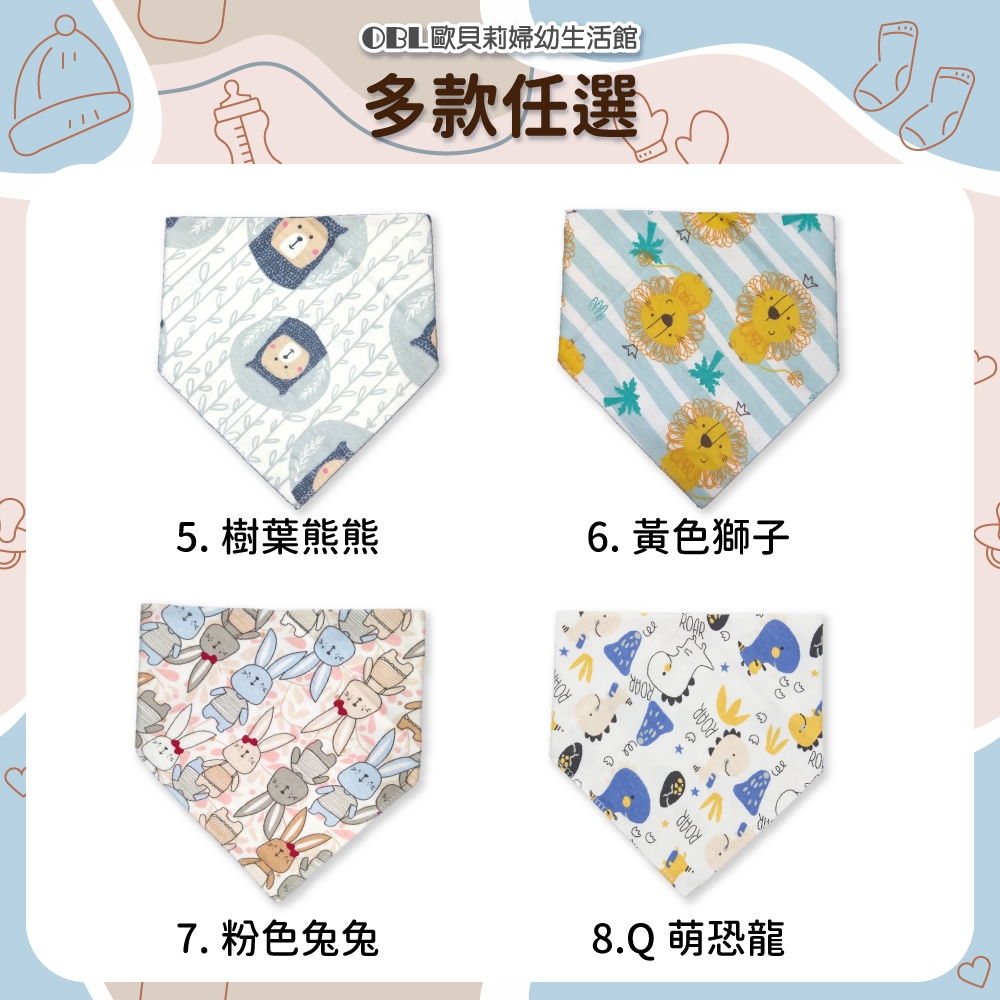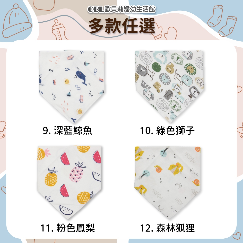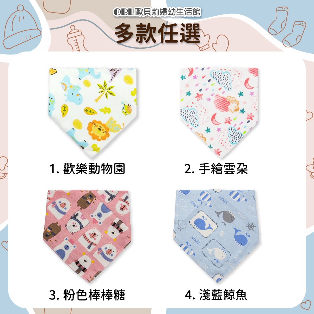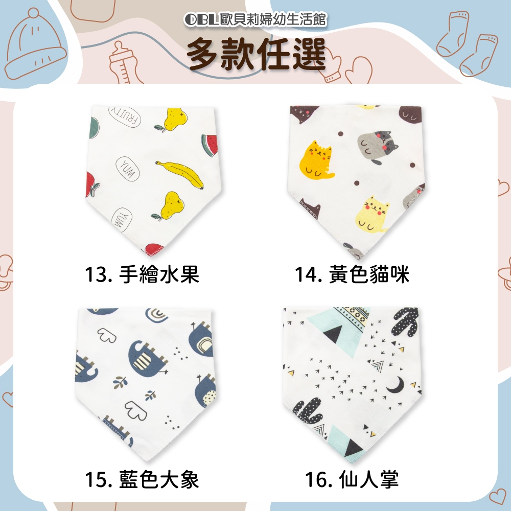 純棉印花三角口水巾 手繪風 手繪口水巾 嬰兒口水巾 雙層三角口水巾 雙暗釦口水巾 可愛印花《OBL歐貝莉》1.歡樂動物園|3.粉北極熊|10.綠色獅子|9.深藍鯨魚|12.森林狐狸|4.淺藍鯨魚|13.手繪水果|11.粉色鳳梨|14.黃色貓咪|8.Q萌恐龍|5.樹葉熊熊|6.黃色獅子|2.手繪雲朵|19.紅藍熊熊|7.粉色兔兔|20.黑藍星星|15.藍色大象|16.仙人掌|17.花花點點|18.灰蘿蔔兔Bibs【OBL 歐貝莉】歐貝莉婦幼生活館