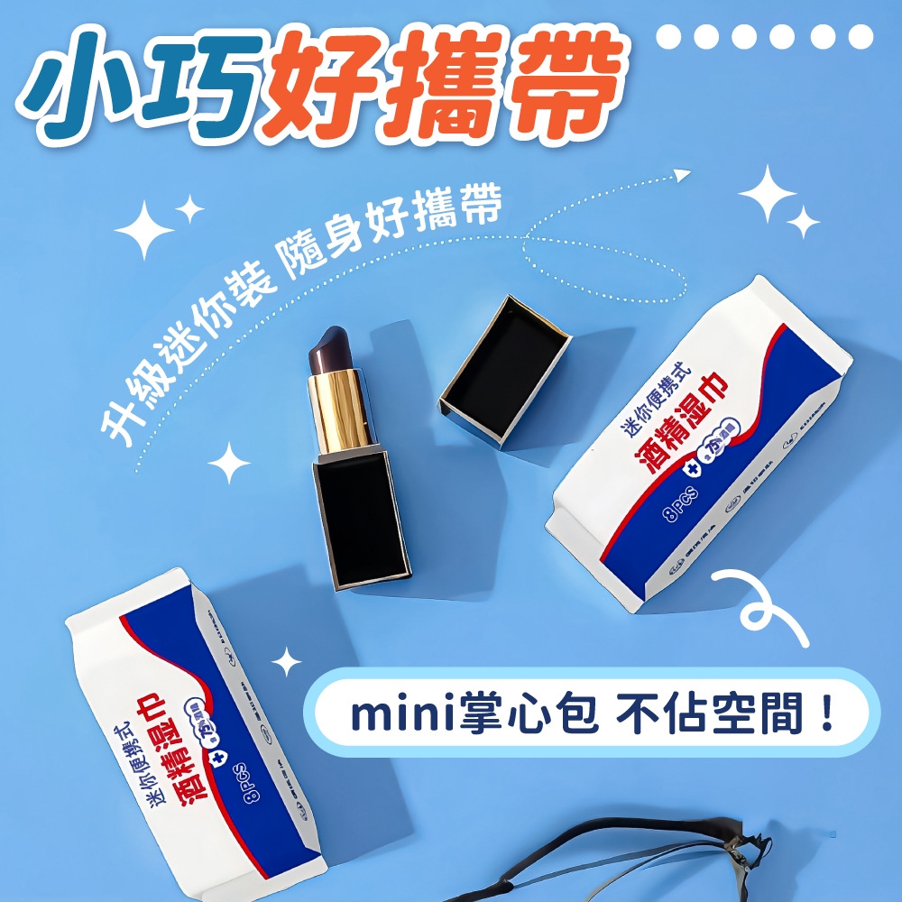 迷你酒精濕巾 8包/袋 75%酒精 酒精濕巾 酒精濕紙巾 濕巾 酒精 酒精片 濕紙巾【小麥購物】【S386】一袋|勿拆封Wipes 小麥購物