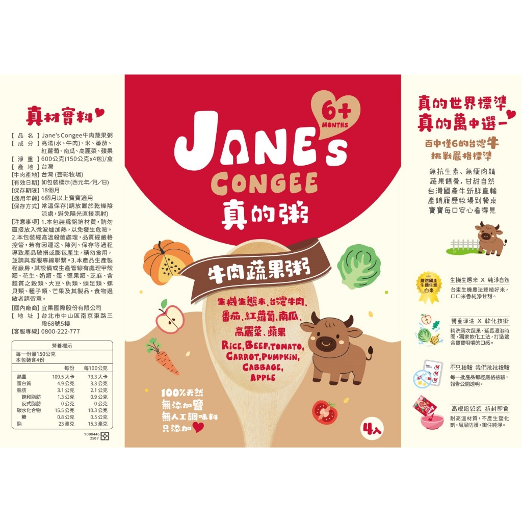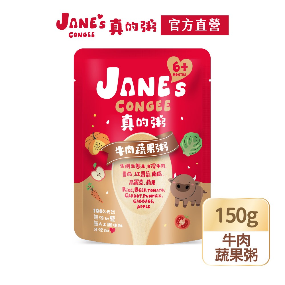 【Jane’s Congee】真的粥 牛肉蔬果粥150g|單入/多入組|官方直營牛肉蔬果粥150g/包|牛肉蔬果粥150gx4包/盒Baby Porridge, Puree & CerealACE Family健康家庭官方旗艦店