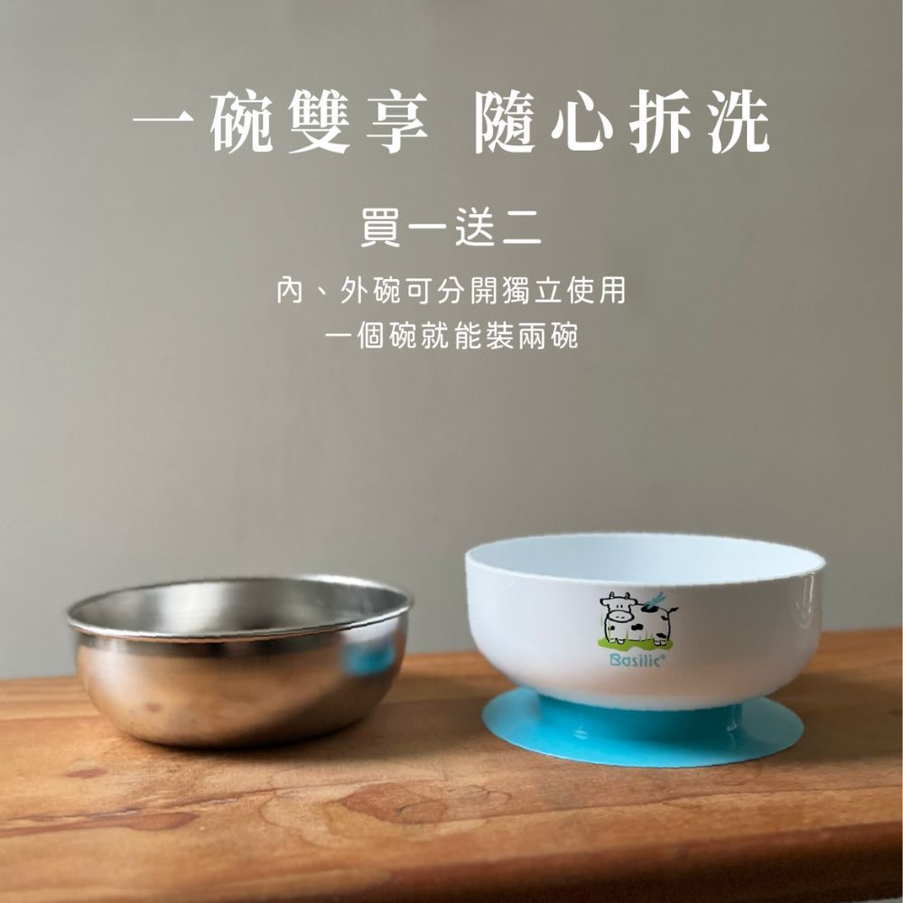 【貝喜力克官方】304不鏽鋼吸盤碗 台灣製造 隔熱碗 兩用碗 學習餐具 兒童練習碗 學習碗 嬰兒碗 (D1359)黃|綠|粉|藍UtensilsBasilic 貝喜力克官方旗艦店