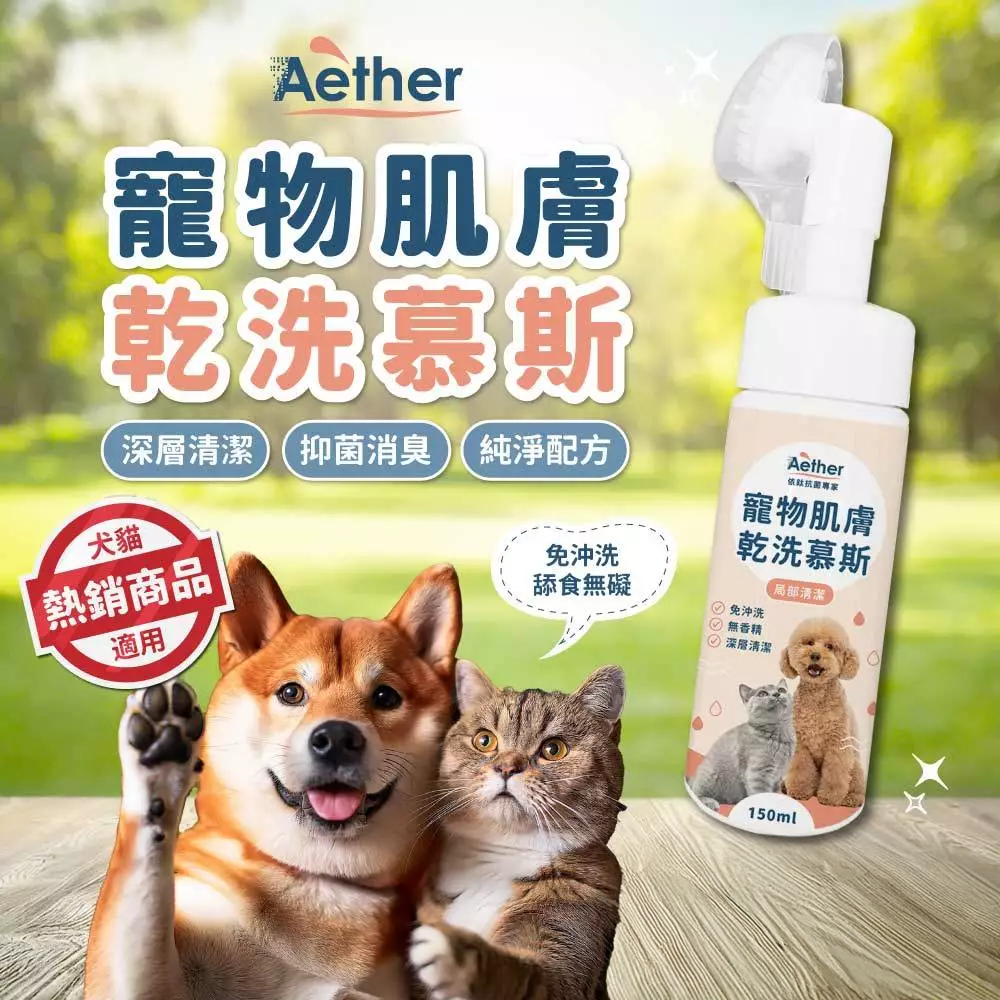【Aether依鈦】寵物肌膚乾洗慕斯 150ml 寵物洗腳泡沫 免沖洗 犬貓通用 腳掌清潔 屁屁、肛門清潔 指尖紅紅可用
