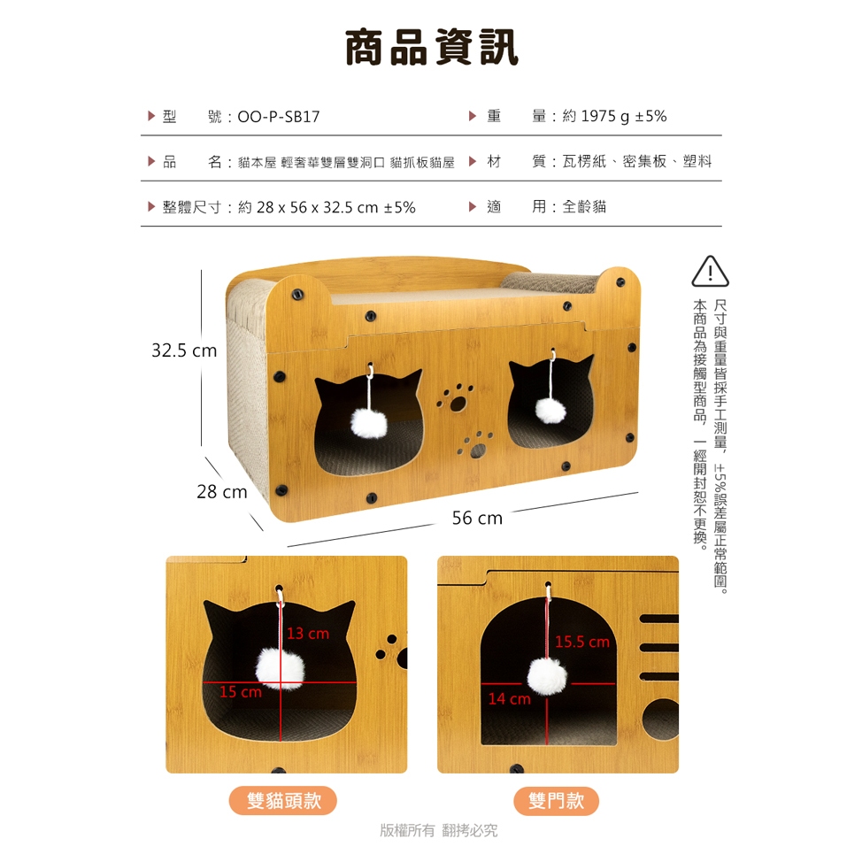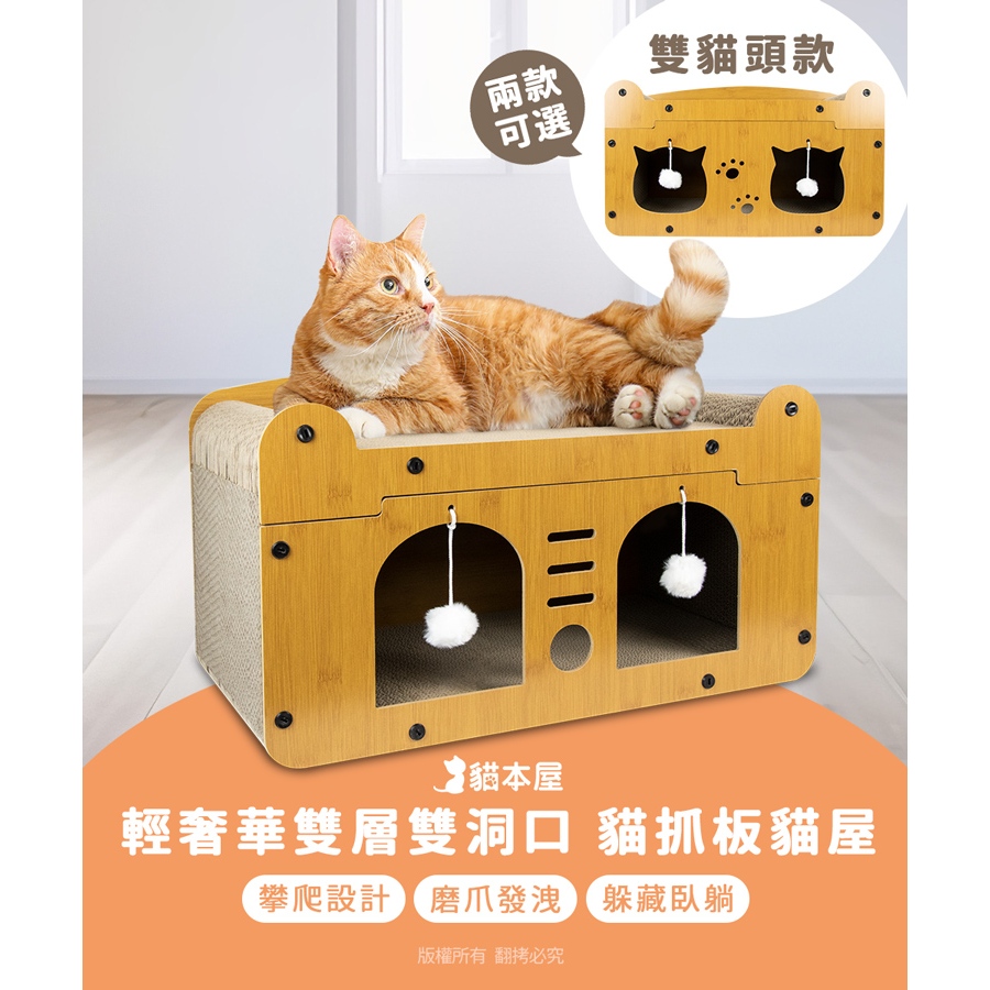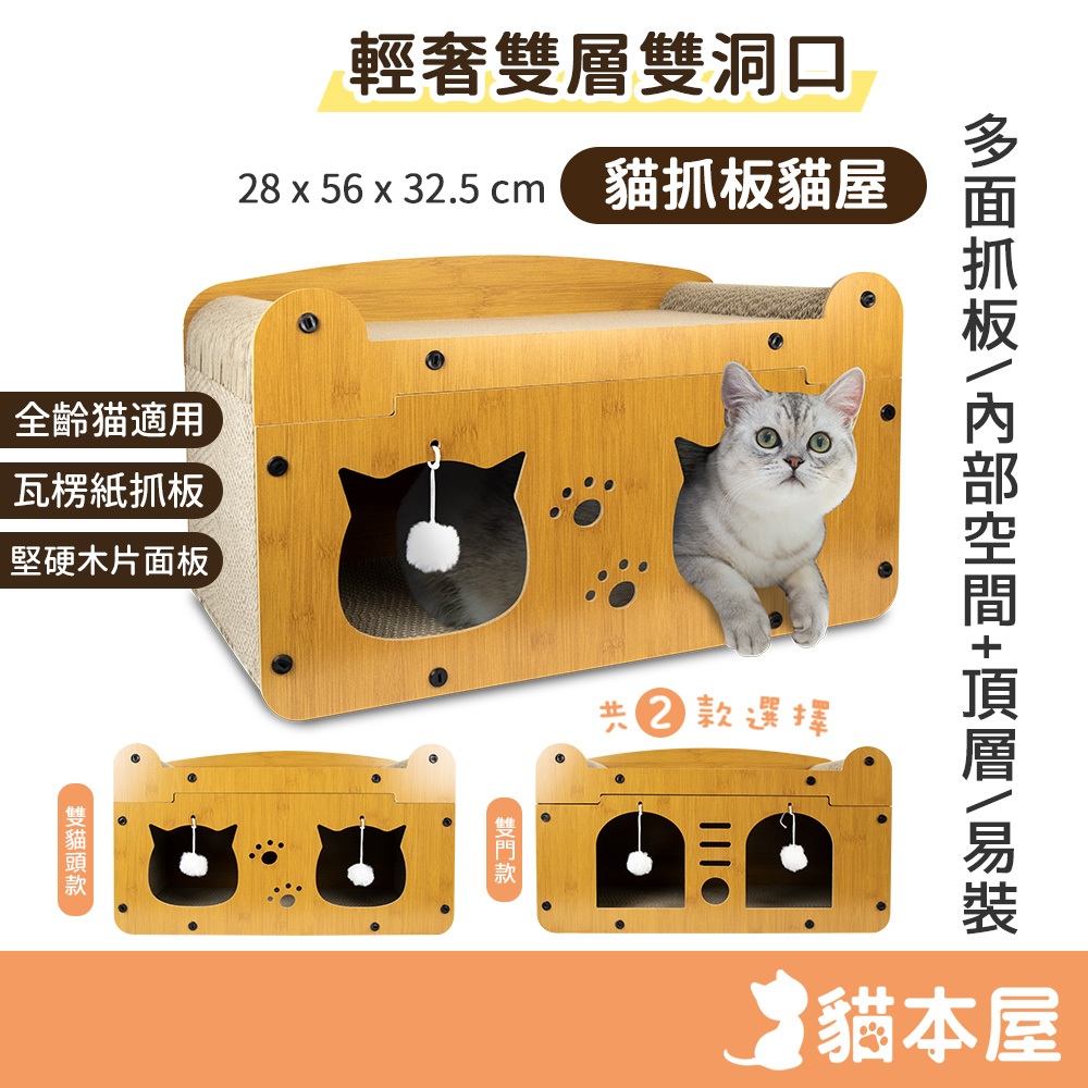 貓本屋 上下雙層可開式 木質貓抓窩【現貨】組合式貓抓屋 耐磨耐抓 木質貓窩 貓別墅 貓屋 雙層貓抓窩 貓抓板貓屋 貓房子雙貓頭款|雙門款Pet Furnitureaibo 3C生活館