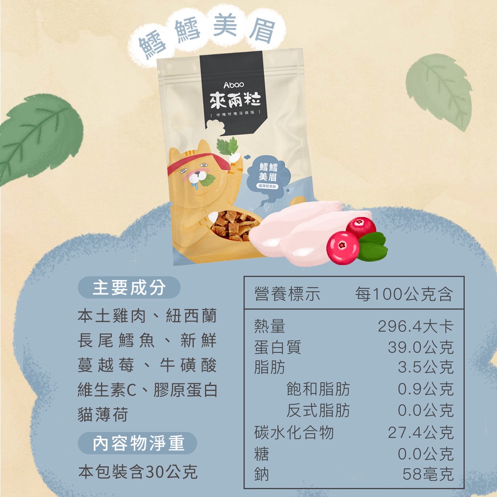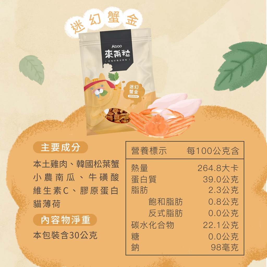 【Abao】5款任選-來兩粒(30g)|貓咪薄荷舒壓零食|貓零食|狗狗零食|全齡犬貓適用|快速出貨來兩粒-鮭茅起司|來兩粒-牛雞成癮|來兩粒-迷幻蟹金|來兩粒-鱈鱈美眉|來兩粒-鮪鮪愛波Cat TreatsAbao阿寶|官方直營店