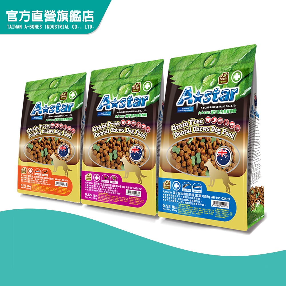 【A Star】潔牙配方無穀狗糧250g-三種口味 (狗飼料 狗糧 寵物飼料 全齡犬)|官方旗艦店鮭魚+雞肉|雞肉+牛肉|鱈魚+鮭魚Dog FoodA Star 官方旗艦店
