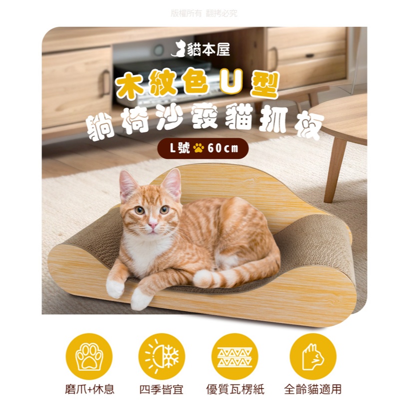 貓本屋 60cm 貴妃椅貓抓板【現貨】 貓抓板 沙發貓抓板 貴妃椅貓抓板 貓咪躺椅 耐磨耐抓 沙發躺椅60cm / L號Pet Furnitureaibo 3C生活館