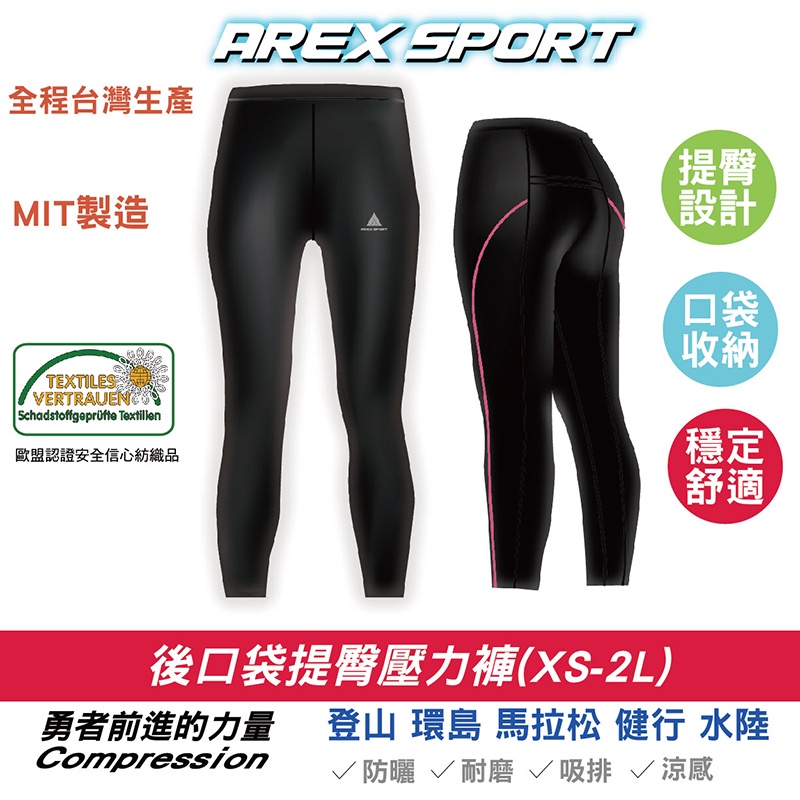 【加大尺碼】AS-9482 女壓縮褲AREX SPORT女款 後口袋提臀壓力褲登山褲 壓縮褲黑,XS|黑,S|黑,M|黑,L|黑,XL|黑,2L|桃紅,XS|桃紅,S|桃紅,M|桃紅,L|桃紅,XL|桃紅,2LBottomsAREXSPORT運動機能服飾