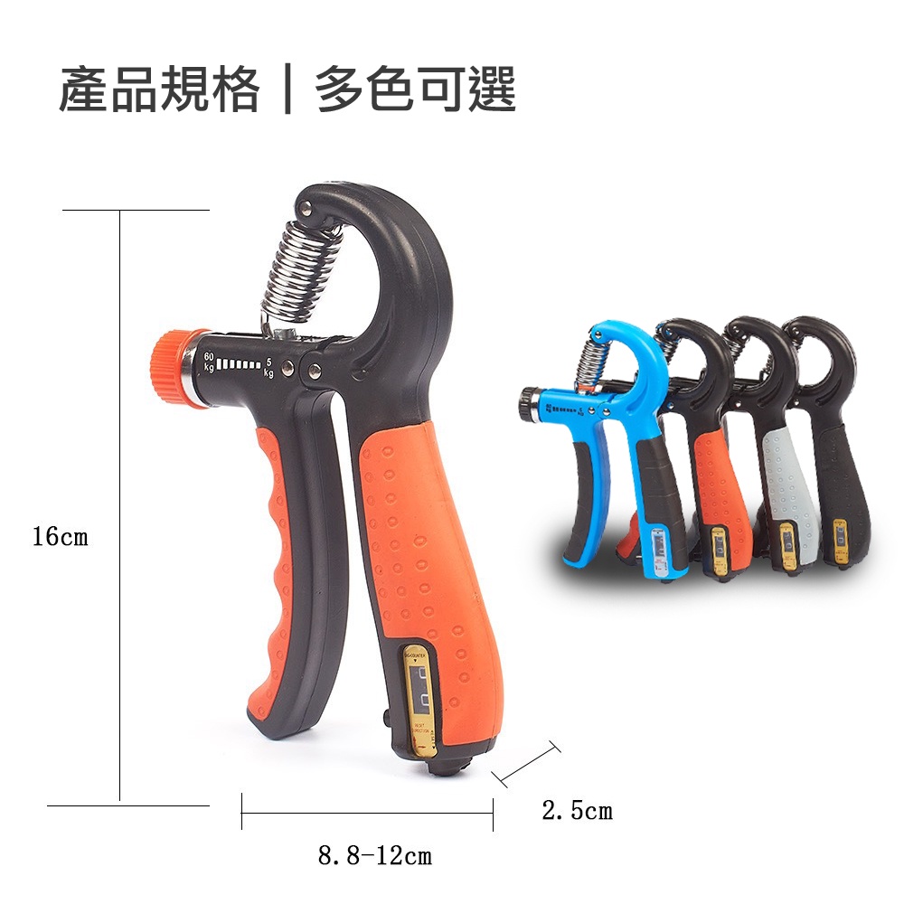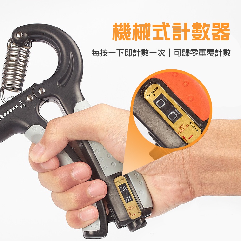 【MACMUS】5-60kg彈簧式握力器附計數器|指力訓練器|握力訓練握力測試握力圈握力機指力訓練|多色可選全黑|灰黑|藍黑|橘黑Training Equipments【九鶴戶外】加重背心 運動沙袋/沙包 軟式啞鈴 運動肌貼/膠帶 拉力圈 運動包包