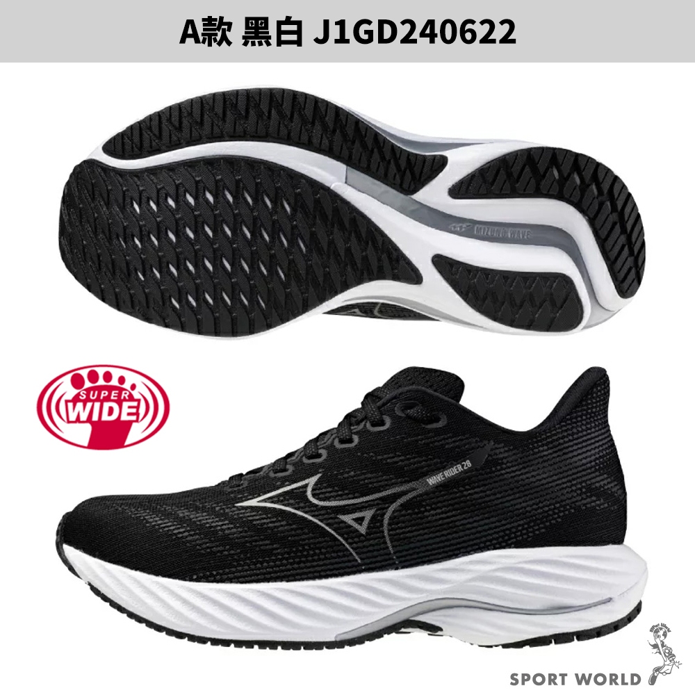 Mizuno 慢跑鞋 女鞋 WAVE RIDER 28 4E超寬楦【運動世界】J1GD240622/72/73/75C款 紫 J1GD240673,22.5CM|D款 米粉 J1GD240675,24CM|A款 黑白 J1GD240622,24.5CM|A款 黑白 J1GD240622,26CM|B款 灰 J1GD240672,23CM|B款 灰 J1GD240672,26CM|D款 米粉 J1GD240675,26CM|A款 黑白 J1GD240622,23.5CM|A款 黑白 J1GD240622,25CM|B款 灰 J1GD240672,25.5CM|A款 黑白 J1GD240622,25.5CM|D款 米粉 J1GD240675,25.5CM|A款 黑白 J1GD240622,23CM|B款 灰 J1GD240672,24CM|D款 米粉 J1GD240675,23CM|D款 米粉 J1GD240675,23.5CM|B款 灰 J1GD240672,23.5CM|D款 米粉 J1GD240675,24.5CM|D款 米粉 J1GD240675,25CM|A款 黑白 J1GD240622,24CM|B款 灰 J1GD240672,24.5CM|B款 灰 J1GD240672,25CM|D款 米粉 J1GD240675,22.5CM|B款 灰 J1GD240672,22.5CM|A款 黑白 J1GD240622,22.5CM|C款 紫 J1GD240673,23CM|C款 紫 J1GD240673,23.5CM|C款 紫 J1GD240673,24CM|C款 紫 J1GD240673,24.5CM|C款 紫 J1GD240673,25CM|C款 紫 J1GD240673,25.5CM|C款 紫 J1GD240673,26CMRunning Shoes【運動世界 Sport World】