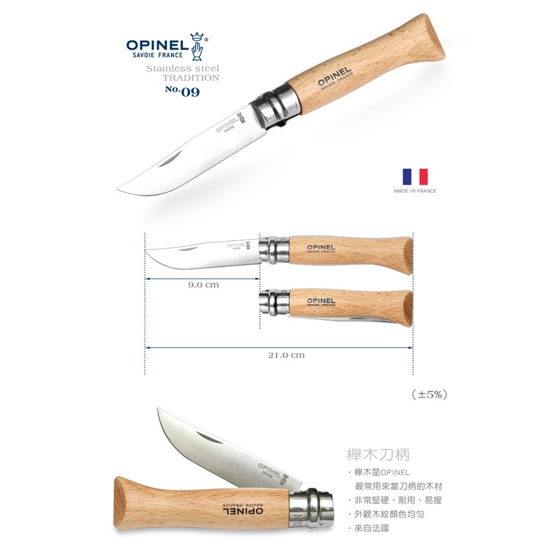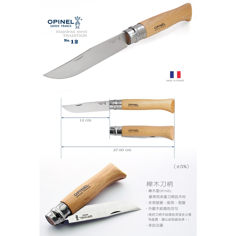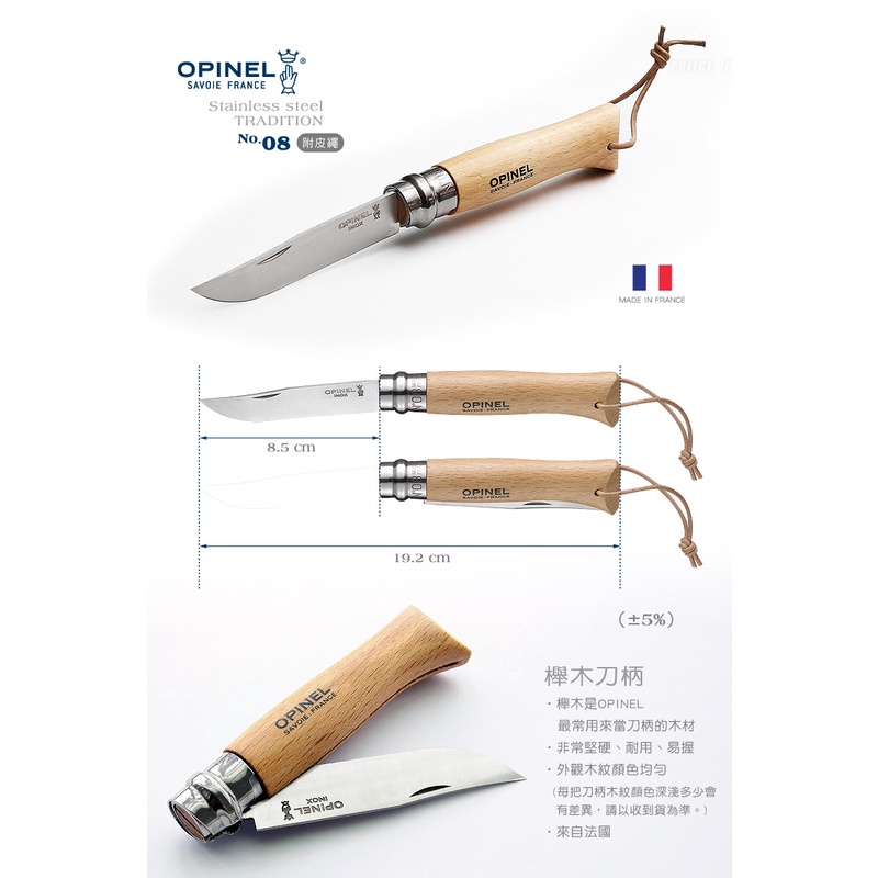 OPINEL櫸木柄系列-No.08 / No.09 / No.10 / No.12不鏽鋼折刀【露營狼】【露營生活好物網】8號刀-編碼123080|9號刀-編碼001083|10號刀-編碼123100|12號刀-編碼001084Camping & Hiking【露營狼】【露營生活好物網】
