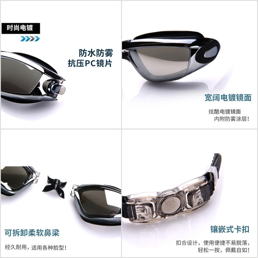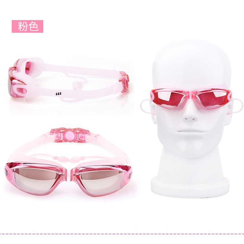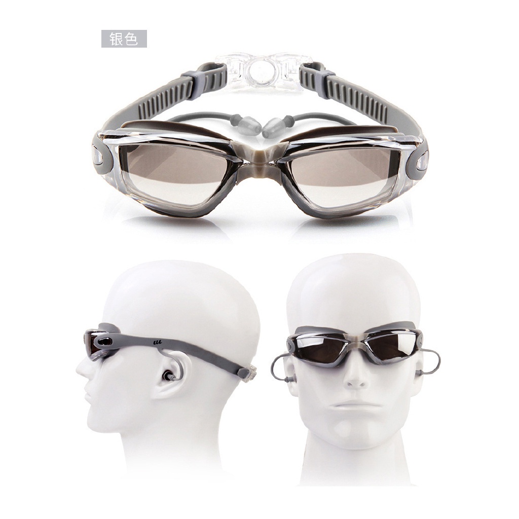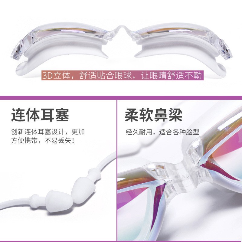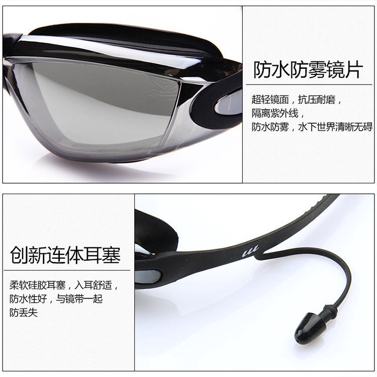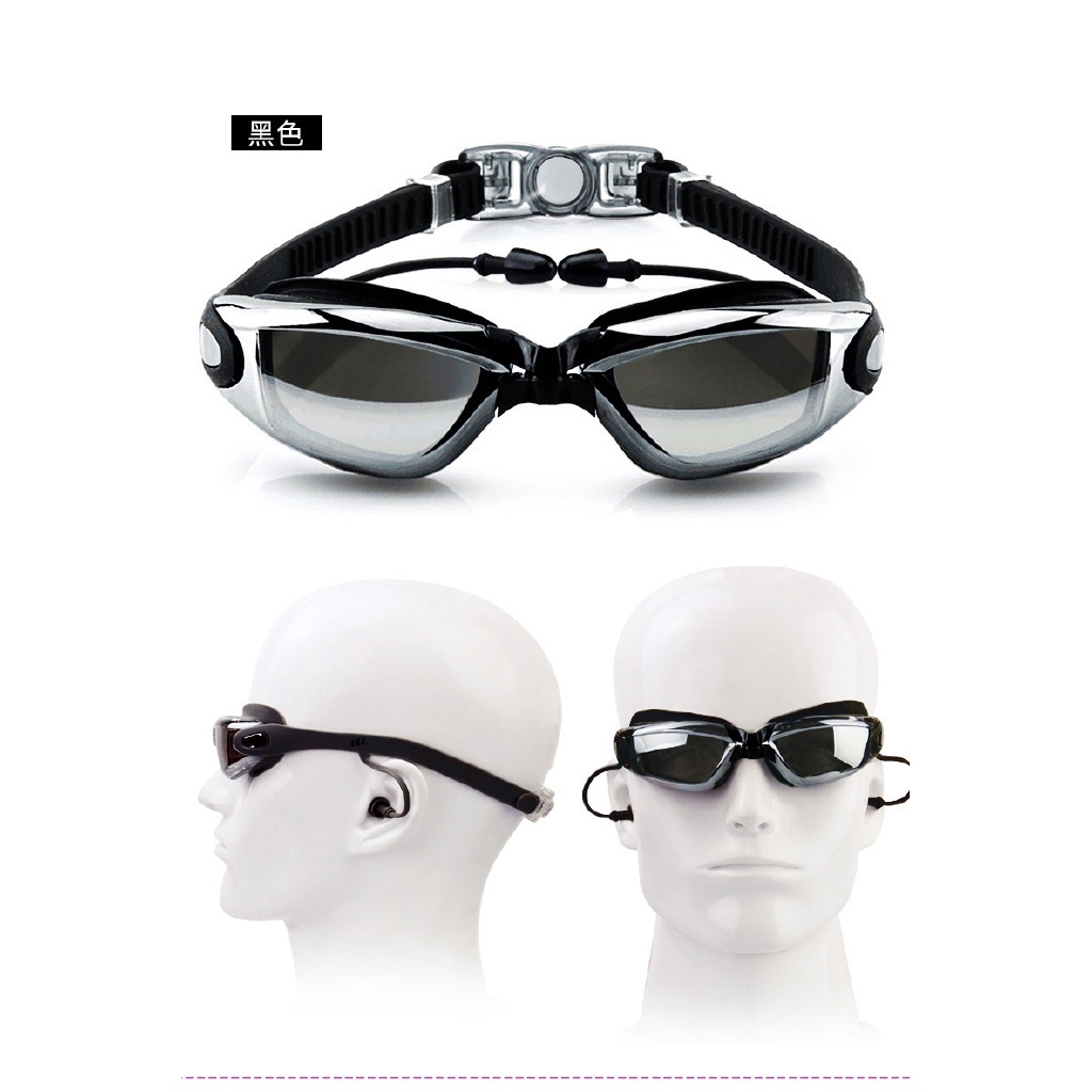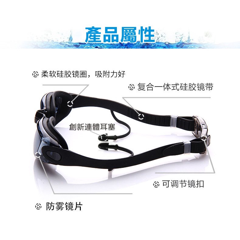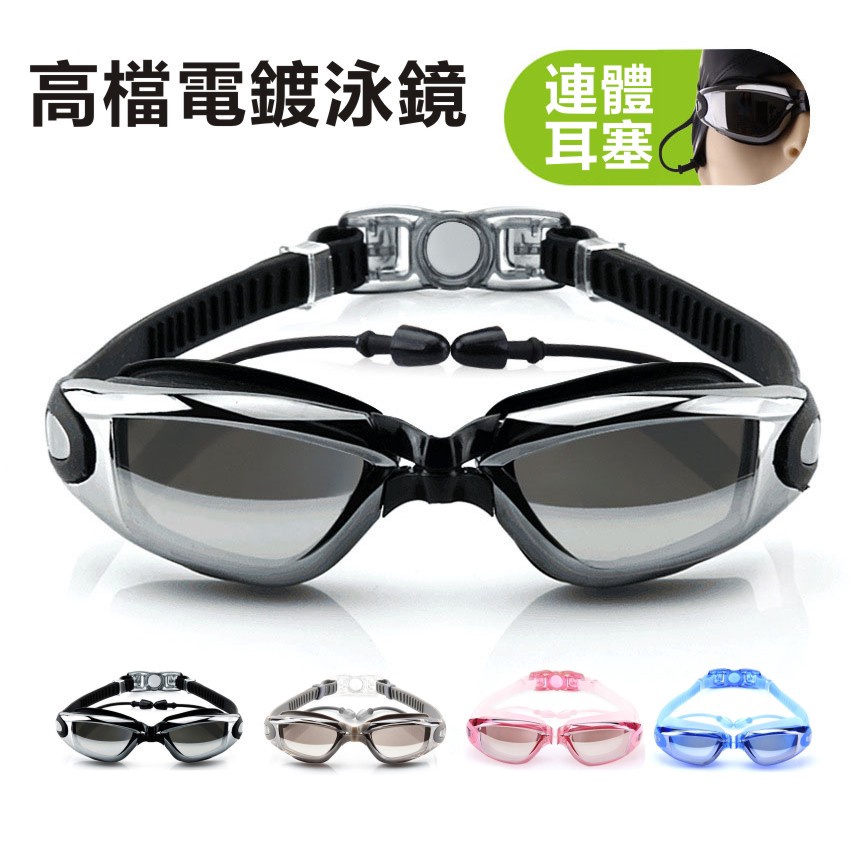 連體耳塞式遊泳鏡 防水防霧泳鏡 流線型 電鍍酷炫 大框 高檔 高清蛙鏡 平光 游泳眼鏡 緊密貼合 柔軟矽膠墊片 成人泳鏡電鍍黑|電鍍藍|電鍍灰|電鍍粉Swimming & DivingADHIL旗艦店