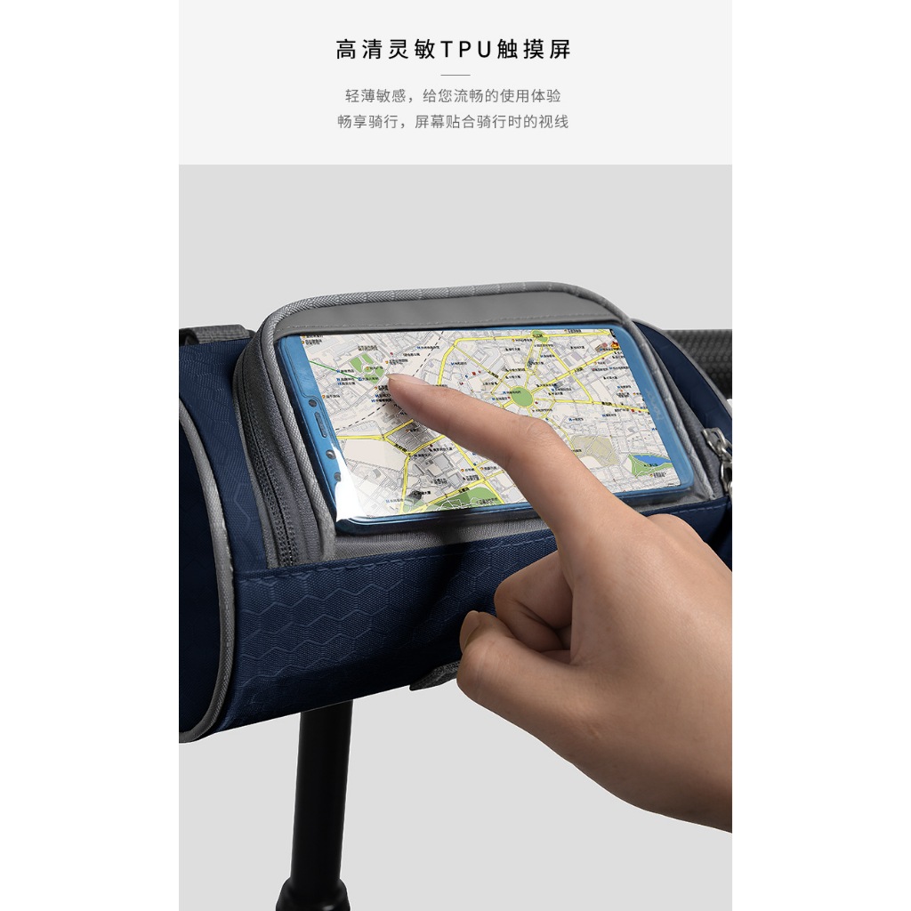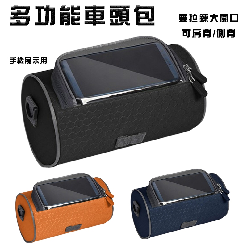 防潑水車頭包 觸屏掛包 多功能車頭包 單車包 雙拉鍊前掛包 腳踏車包 車架掛包 騎行包 單車掛包 適用6.1吋 側背包黑色|藏青|橙色CyclingADHIL旗艦店