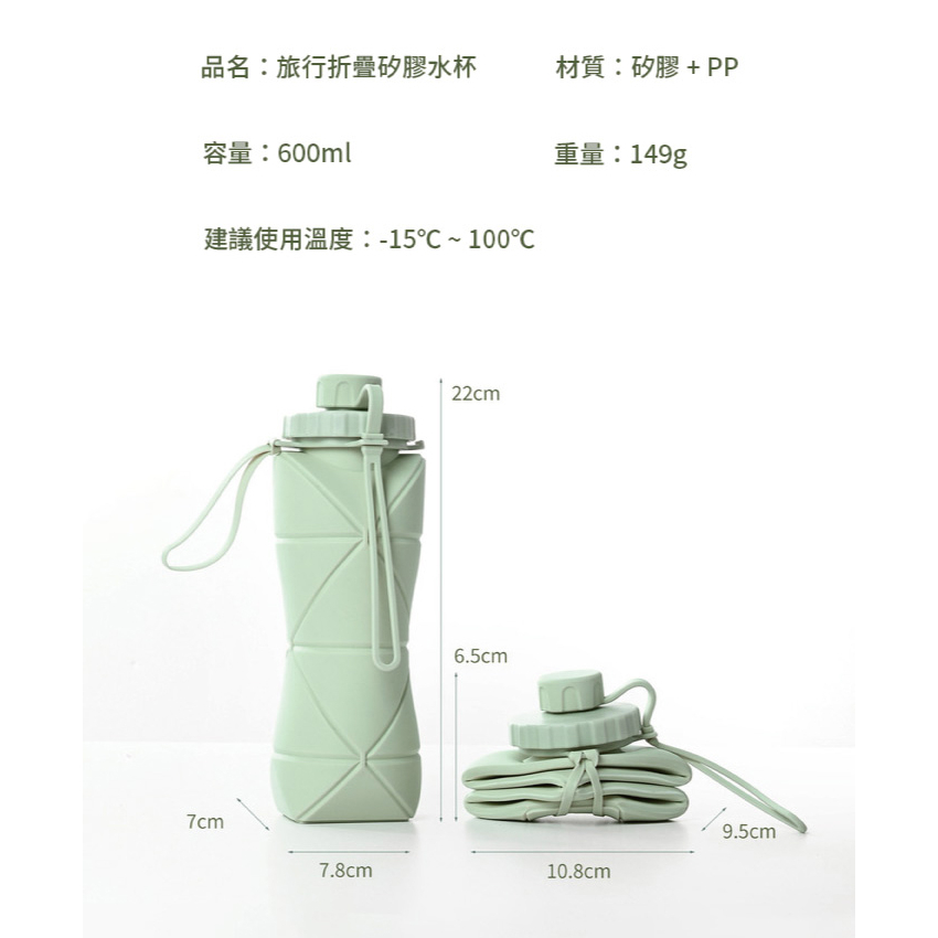 旅行折疊矽膠水杯(600ml)-粉/藍/綠/灰【333家居鞋館】折疊杯 旅行杯 日用品藍色|綠色|灰色|粉色Fitness Equipment333家居鞋館-拖鞋專賣店