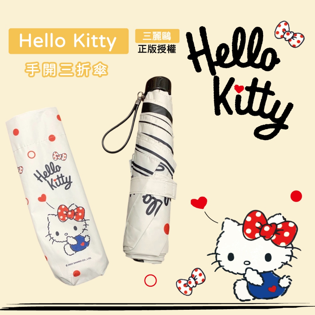 《三麗鷗正版授權》 Hello Kitty 三折傘 米黃色-紅白點點款 摺疊傘 三折傘 折傘 雨傘 傘《三麗鷗正版授權》 Hello Kitty 三折傘 米黃色-紅白點點款 摺疊傘 三折傘 折傘 雨傘 傘Umbrellas923就愛傘 官方直營店