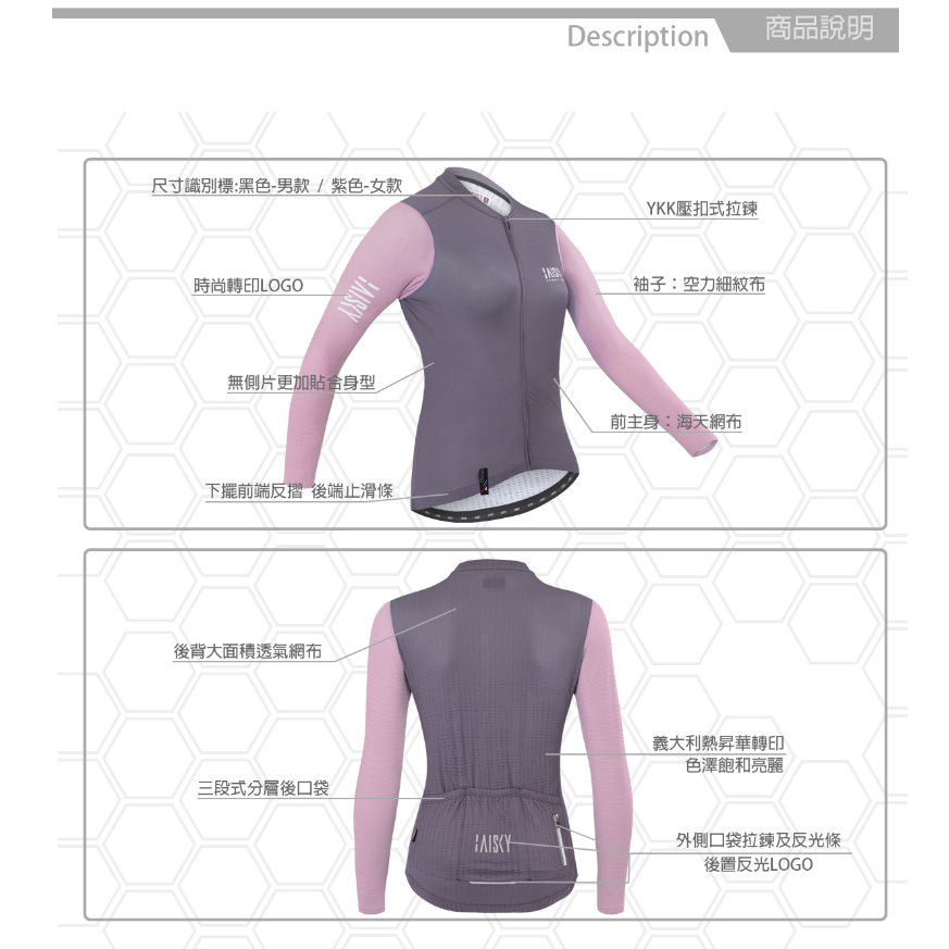 BAISKY百士奇自行車衣女款空力薄款長車衣 對比 灰紫XS|S|M|L|XLCyclingBAISKY官方旗艦館