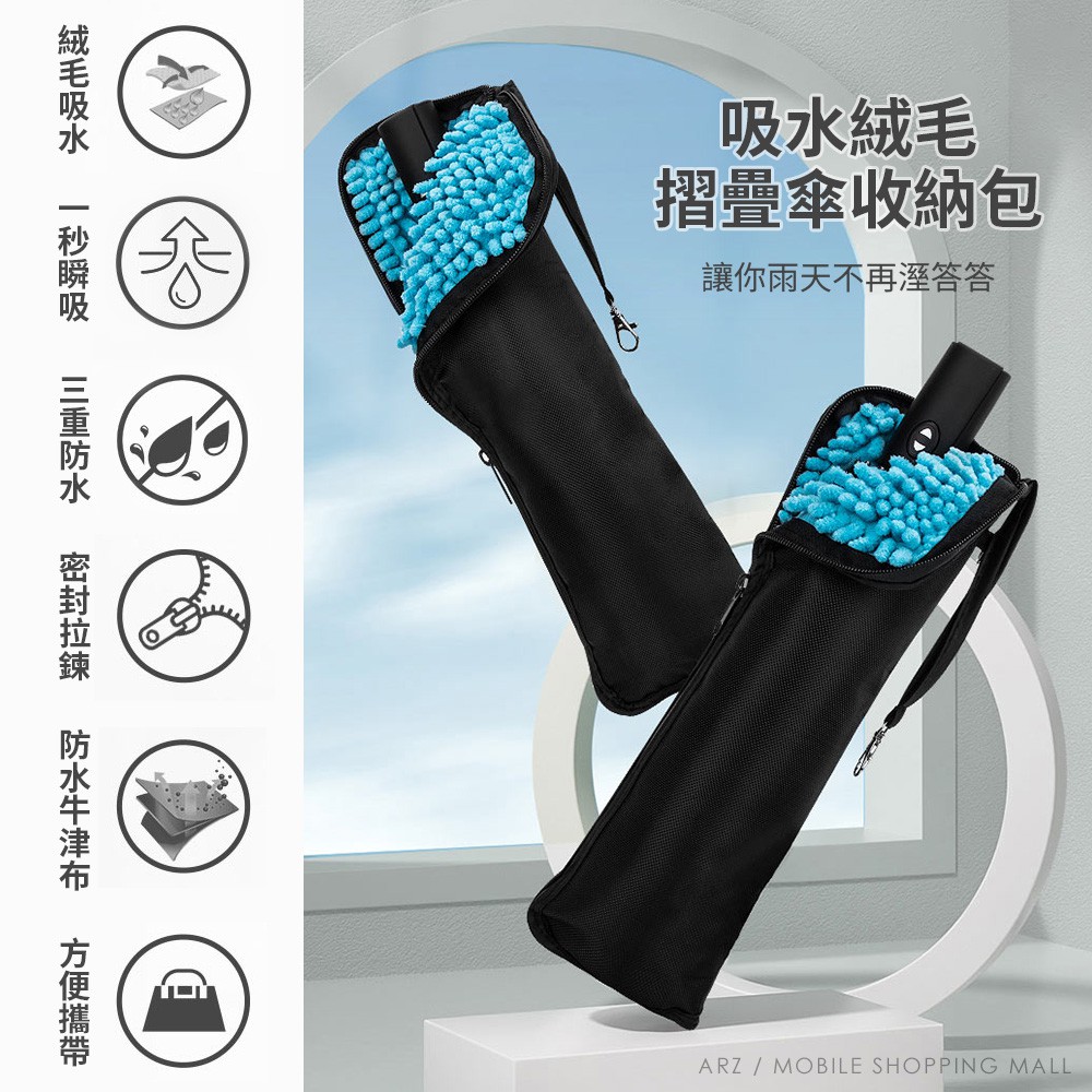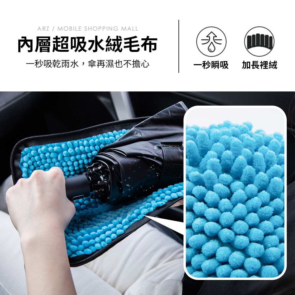 雨傘收納套【ARZ 實拍現貨】【C020】吸水雨傘套 防水 雨傘收納包 摺疊傘套 雨傘袋 防水收納袋 雨傘包 傘套 傘袋黑色(藍絨)UmbrellasARZ行動商城