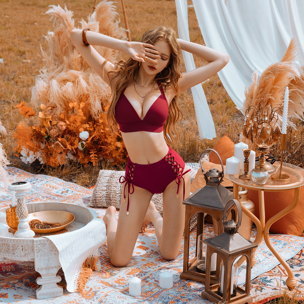 AIR SPACE 小臀視覺高腰側綁鏤空美臀泳褲(紅) 女款 女生泳褲 泳裝 低腰 高腰 泳褲 中大尺碼 溫泉紅M|紅L|紅XL|紅2L|紅XS|紅SSwimming AttireAIR SPACE