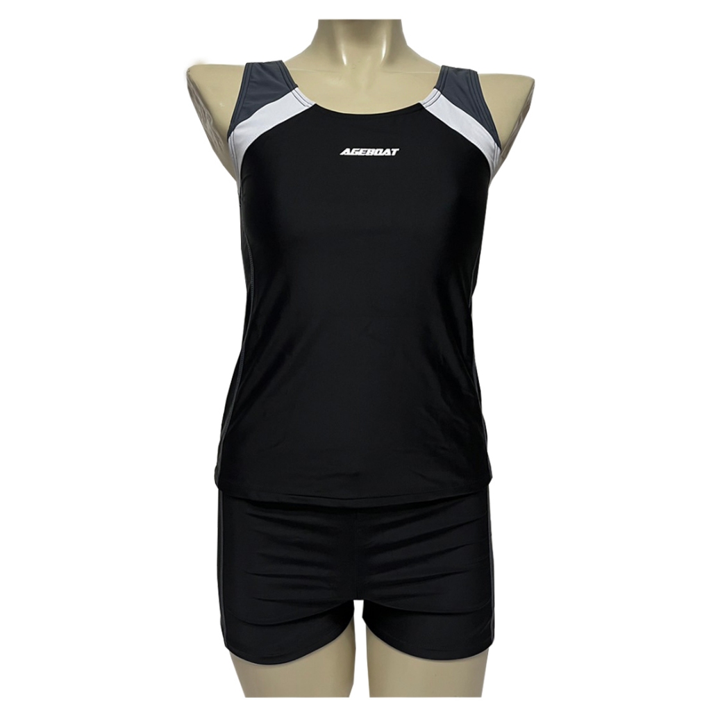 梅林泳裝 大女黑色印字灰白配色二件式泳衣 贈泳帽 N0-M34702QL|M|L|XL|EL|QLSwimming AttireAGE BOAT世紀船泳裝服飾專賣店