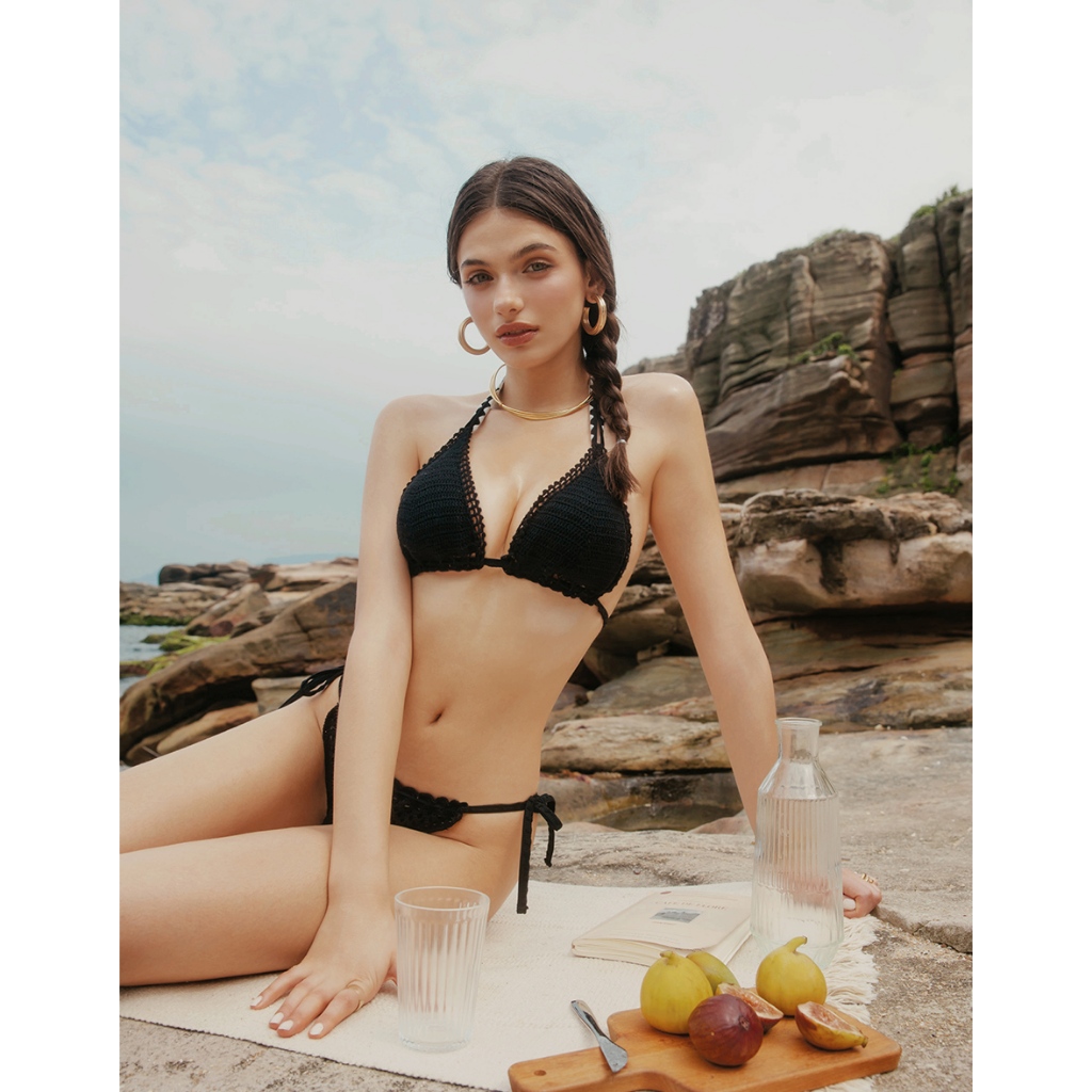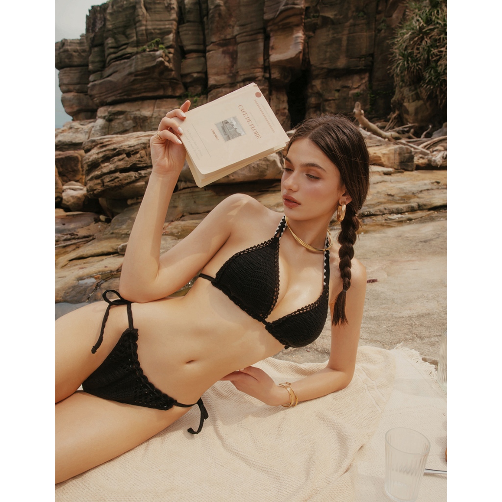 AIR SPACE 手工鉤織花芽滾邊雙綁帶比基尼(黑/米白) 泳裝 現貨 歐美風 自然美胸黑,S|黑,M|黑,L|米白,S|米白,M|米白,LSwimming AttireAIR SPACE