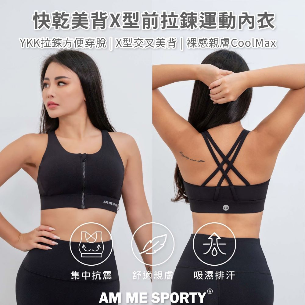 【AM ME】快乾美背X型前拉鍊運動內衣 背心 運動內衣 無鋼圈 內衣 胸罩 拉鍊內衣 (時尚黑 Black)S|M|L|XLSports BrasAM ME SPORTY 運動機能服裝