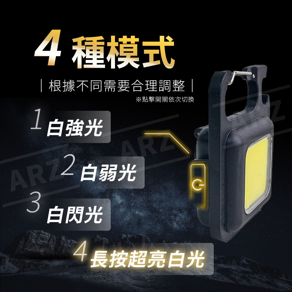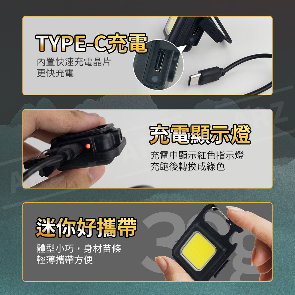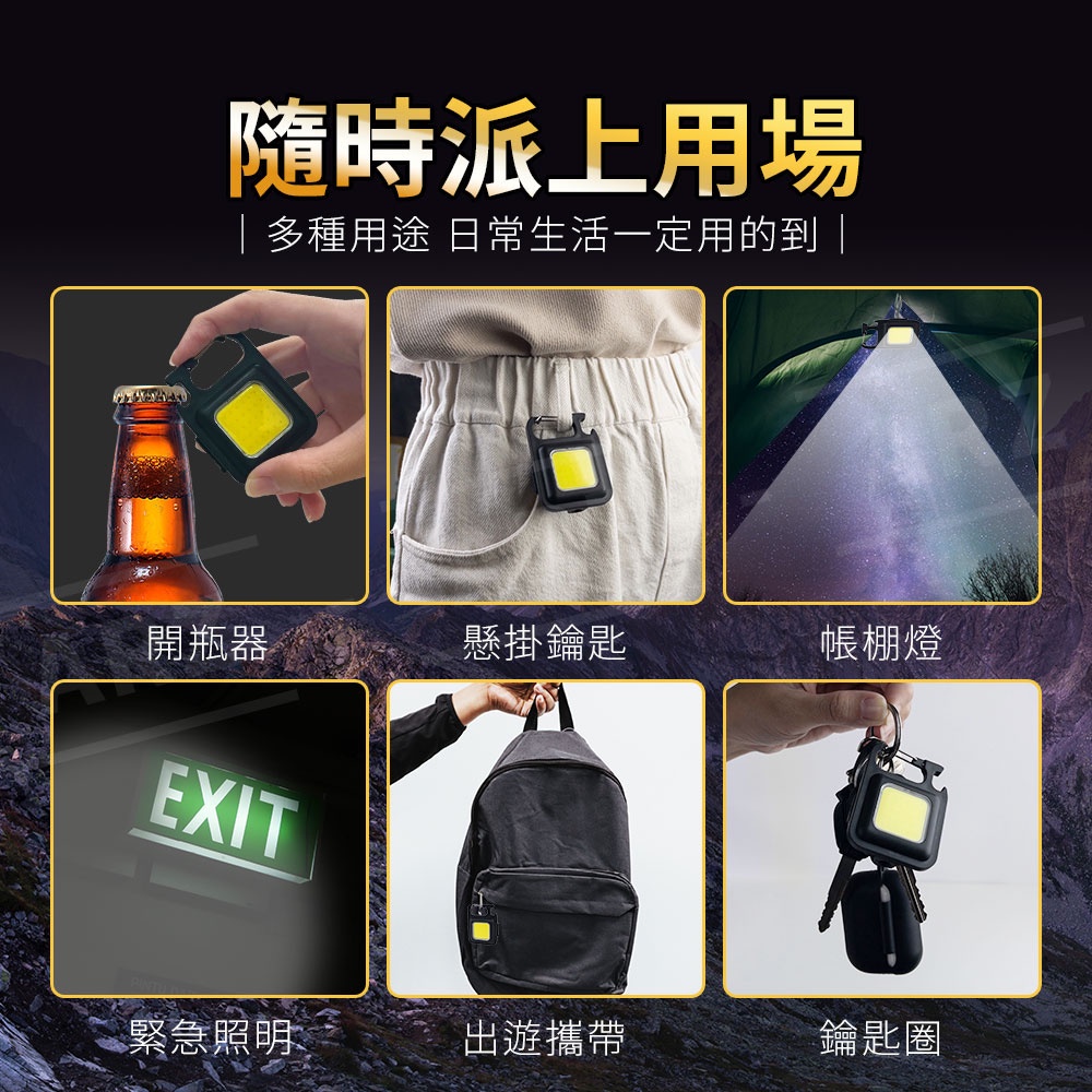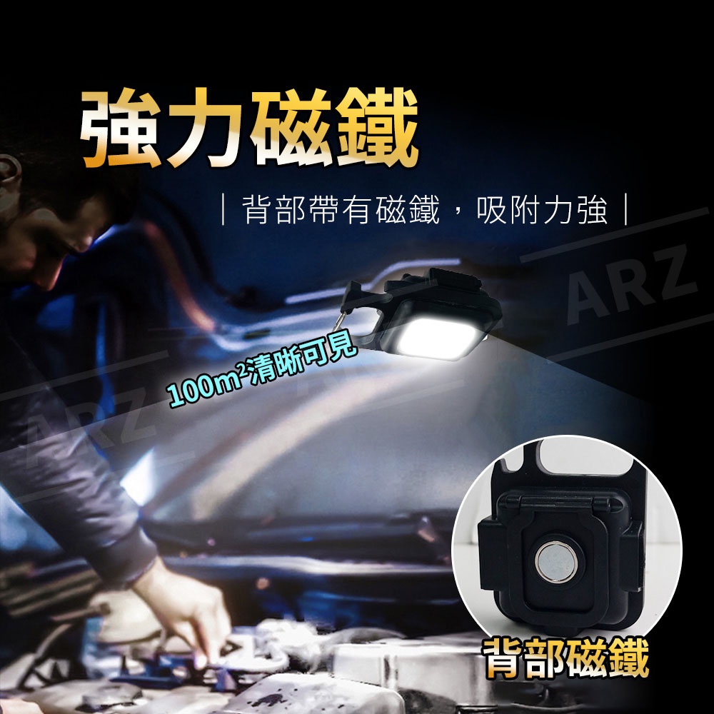磁吸工作燈 入門款【ARZ 實拍現貨】【D225】開瓶器 強光燈 充電露營燈 小手電筒 應急燈 汽修燈 鑰匙圈 檢修燈方形款Camping & HikingARZ行動商城