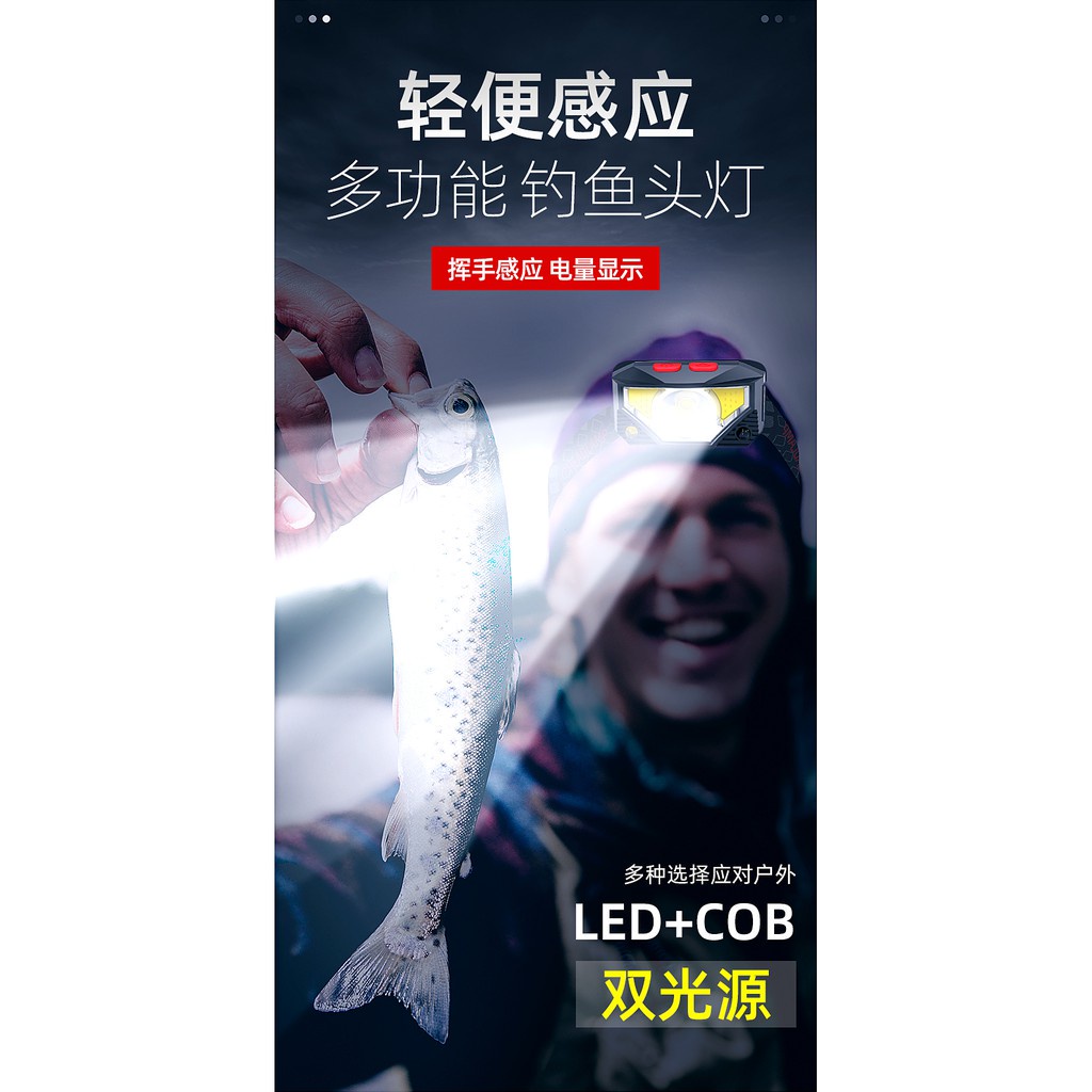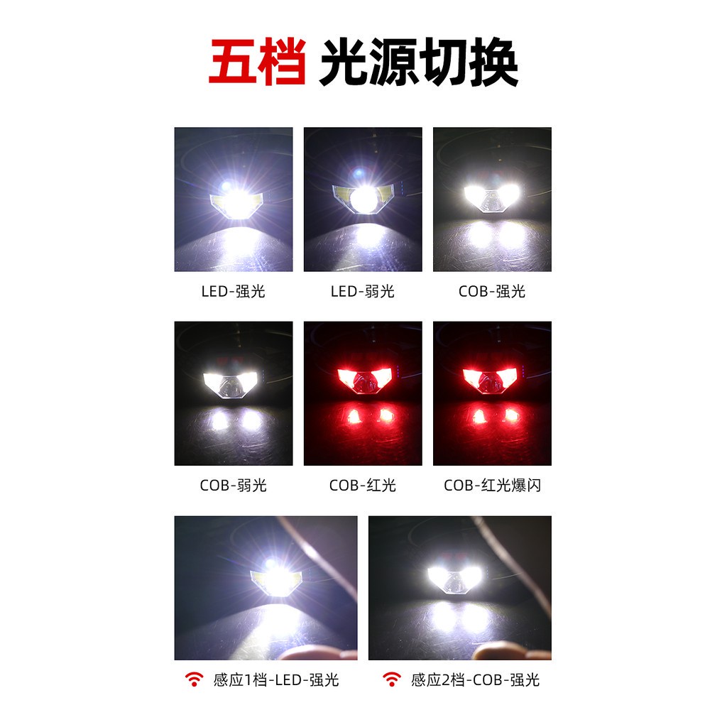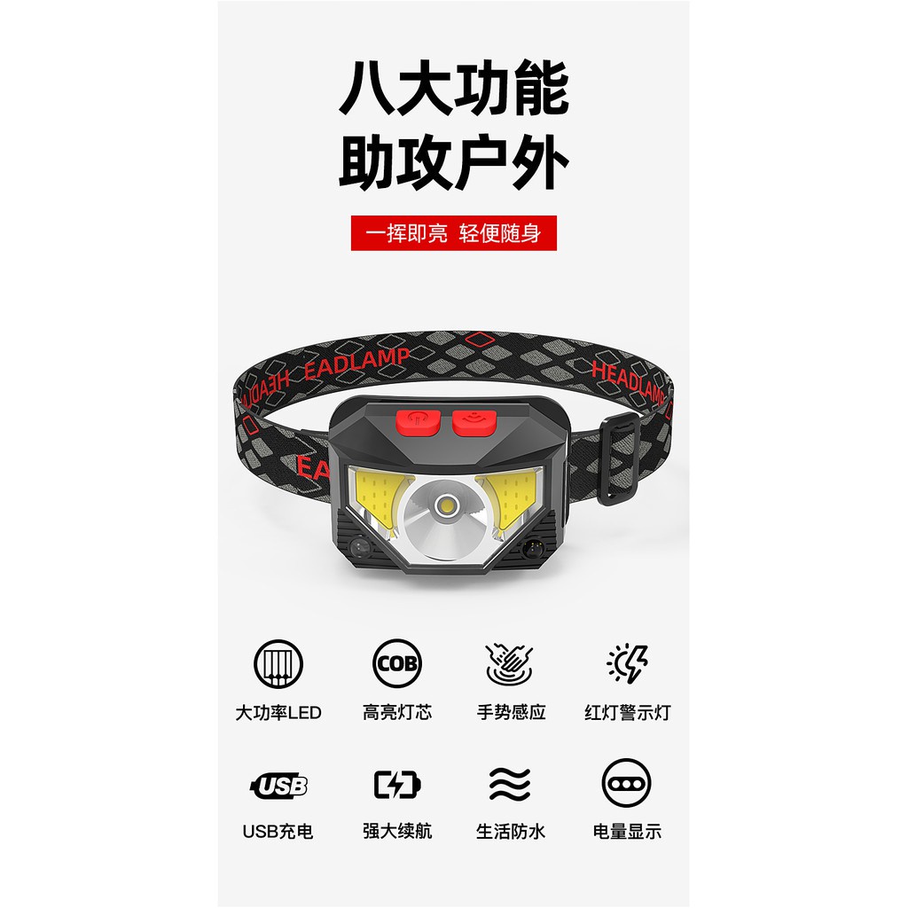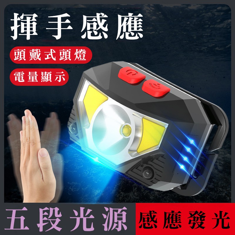 手勢感應式頭燈 大功率LED頭燈 釣魚頭燈 登山燈 戶外燈 工作燈 警示燈 強光頭燈 USB充電 電量顯示 白光/紅光