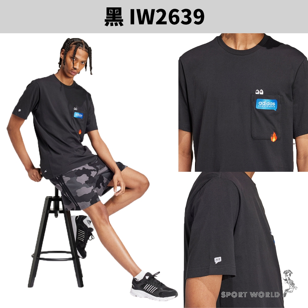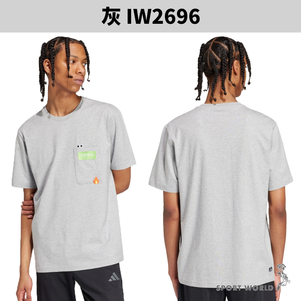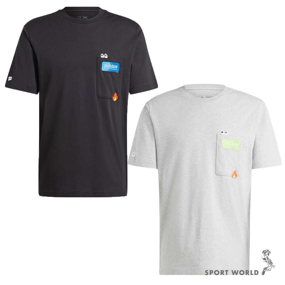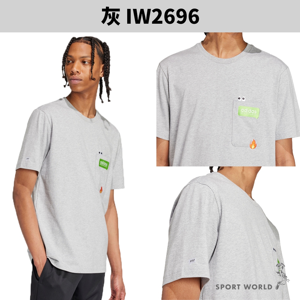 Adidas 短袖上衣 男裝 胸前口袋 純棉 黑/灰【運動世界】IW2639/IW2696