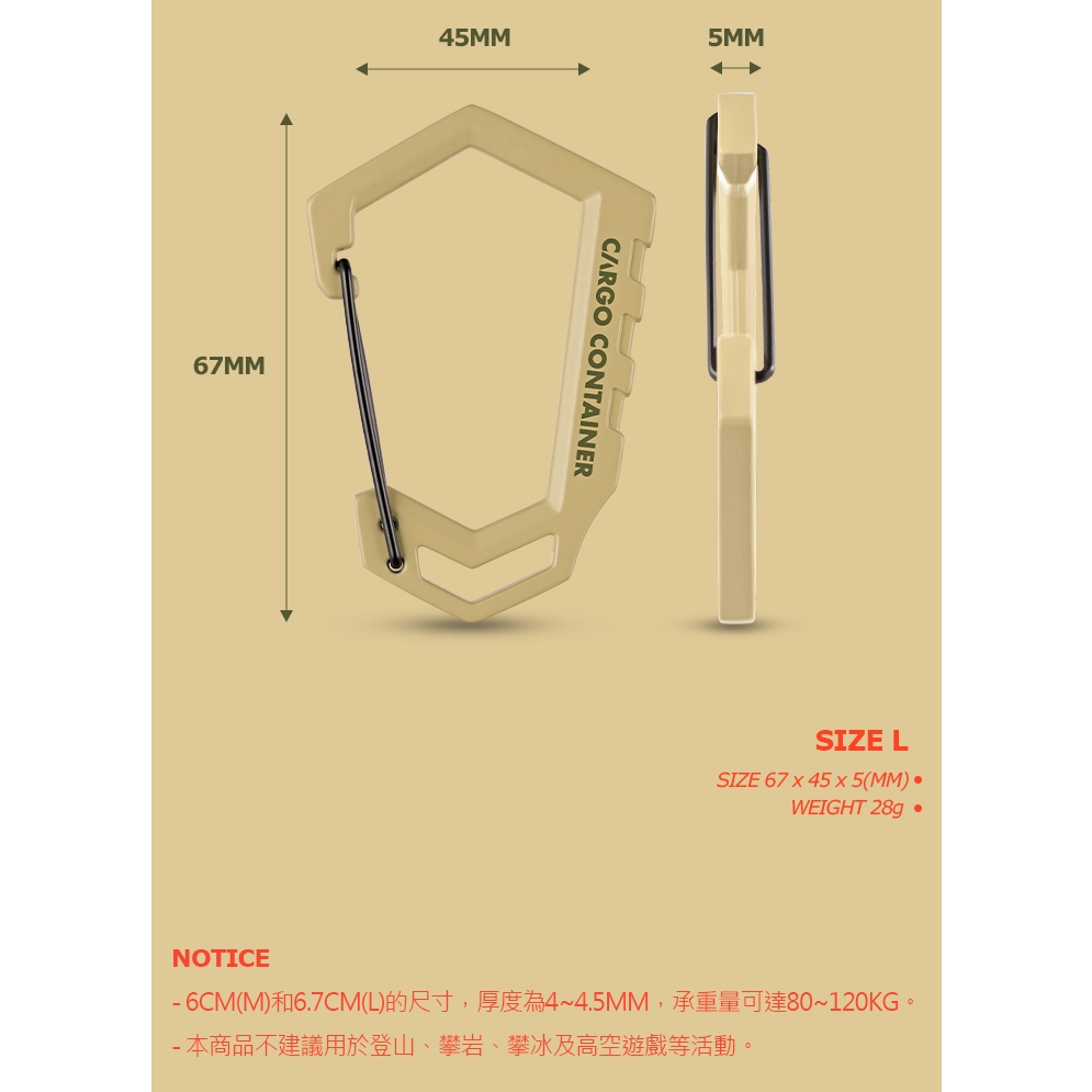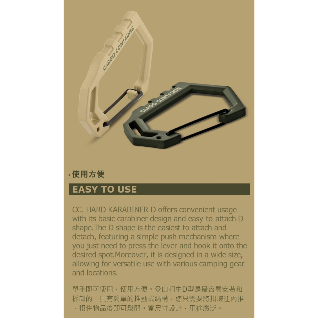 CARGO D型登山扣【露營狼】【露營生活好物網】D型灰色,M號-1個|D型灰色,L號-1個|D型黑色,M號-1個|D型黑色,L號-1個|D型沙色,M號-1個|D型沙色,L號-1個|D型綠色,M號-1個|D型綠色,L號-1個Camping & Hiking【露營狼】【露營生活好物網】