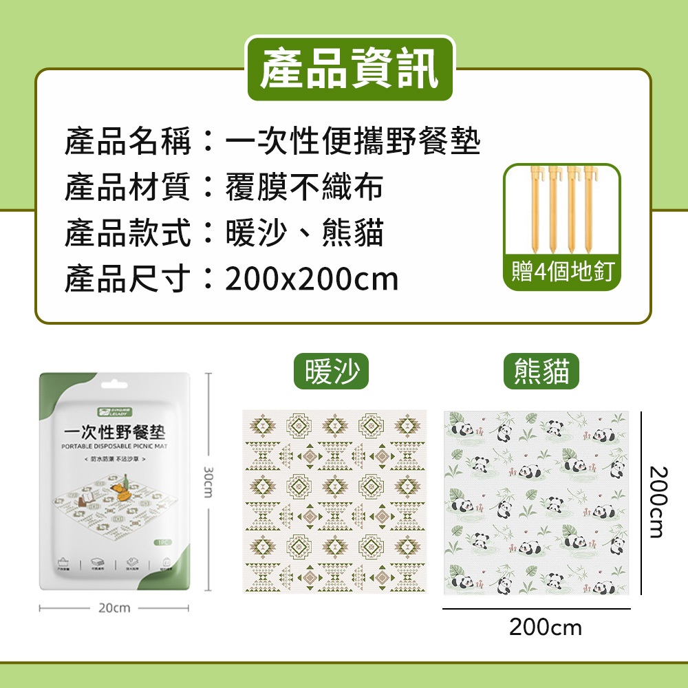 【獨立包裝 市面最大200*200cm】便攜一次性野餐墊 拋棄式野餐墊 防水野餐墊 便攜野餐墊【DA00207】【便攜野餐墊200x200cm】暖沙1入|【便攜野餐墊200x200cm】熊貓1入|【一次性坐墊50x40cm】民族風10入|【一次性坐墊50x40cm】熊貓10入Camping & Hiking【隔日配】JHS專營日用品、汽車百貨、3C周邊