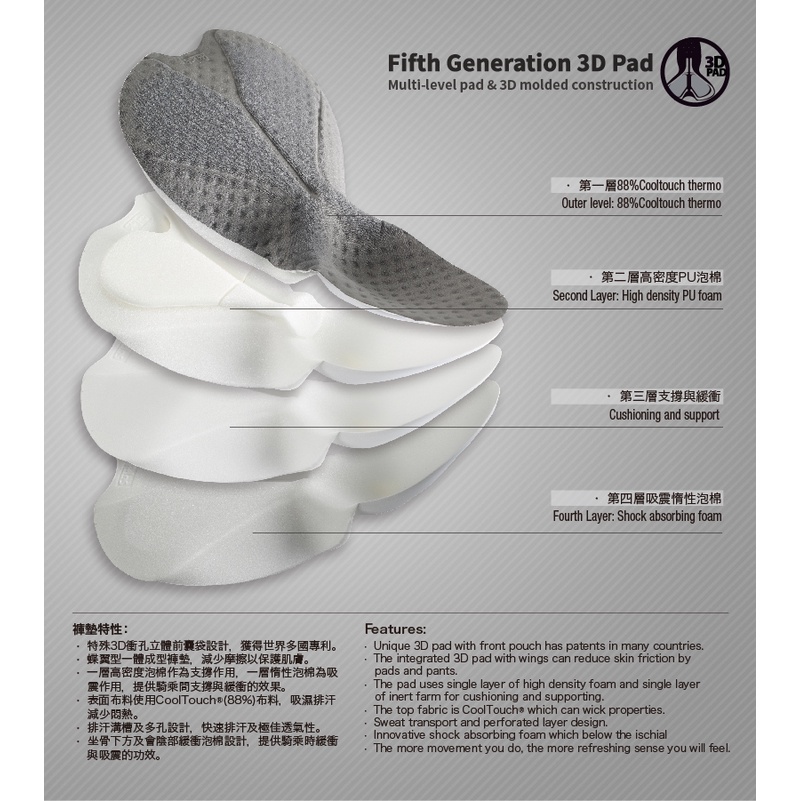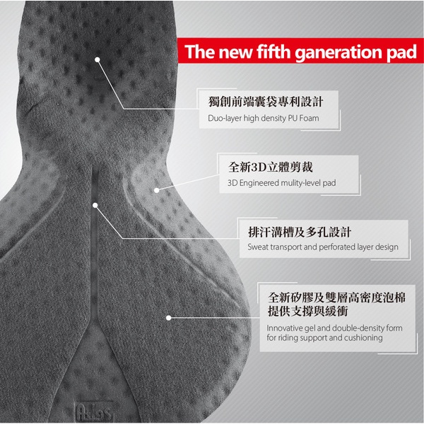 【Atlas 亞特力士】第五代專利褲墊 男性透氣吊帶五分褲(白肩帶)S|M|L|XL|2XLCyclingAtlas Sportswear 亞特力士