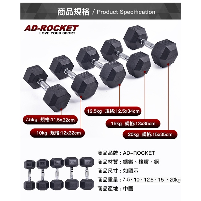 【AD-ROCKET】六角包膠啞鈴(10KG)|品牌旗艦店 啞鈴 重訓 健身(台灣24h出貨)【AD-ROCKET】六角包膠啞鈴(10KG)|品牌旗艦店 啞鈴 重訓 健身(台灣24h出貨)Fitness EquipmentAD ROCKET