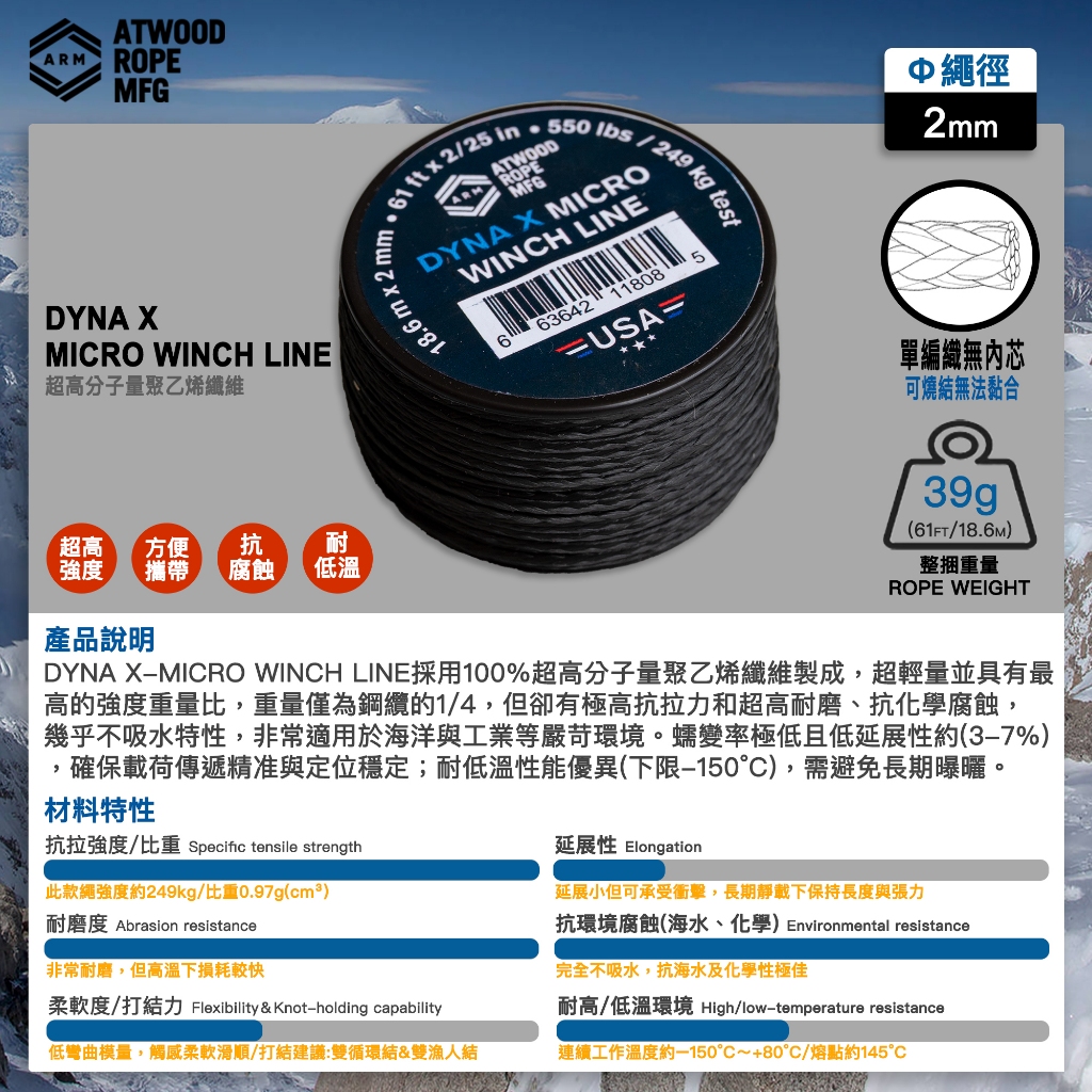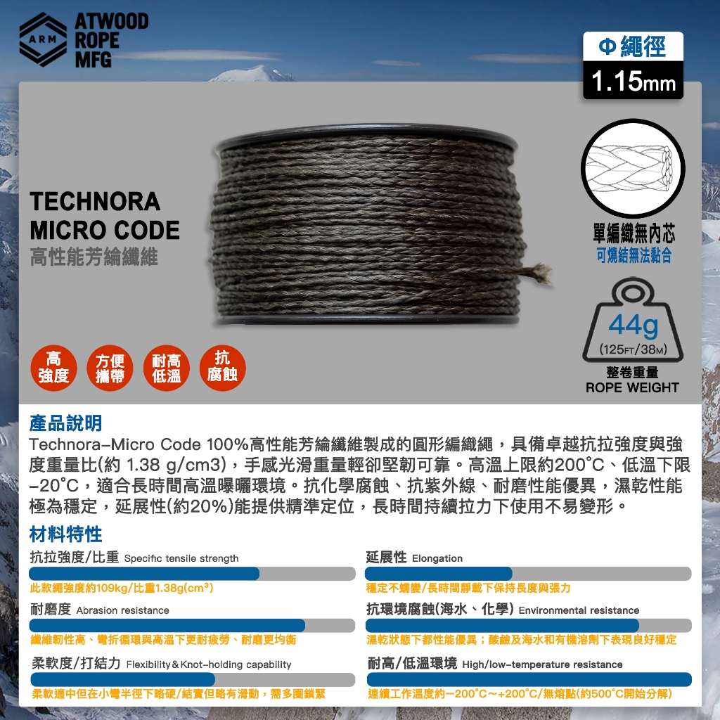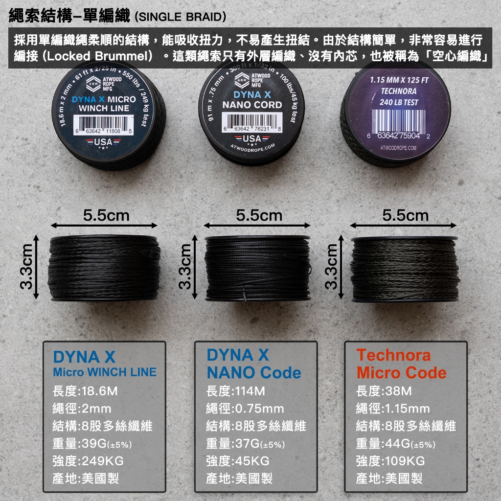 【ATWOOD】超高抗拉力 耐磨抗腐蝕 耐火 DYNA X (UHMWPE) Technora ROPE 芳綸纖維繩.75mm_Dyna X長度114m|1.15mm_Technora長度38m|2mm_Dyna X長度18.6m|3.17mm_Technora長度15m|4.7mm_Dyna X(黑)長度15m|4.7mm_Dyna X(橘)長度15m|9.5mm_Technora長度15mRock ClimbingATWOOD ROPES