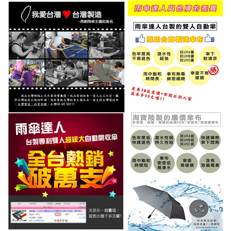 《雨傘達人》全新進化 非常完美49吋雙人自動傘《2支1300元》《免運費》《台灣製造》《防風防曬降溫抗UV大傘面》天空藍(金蔥握把)|寶石紅(金蔥握把)|時尚黑(金蔥握把)|活力橘黃(金蔥握把)|尊爵灰(金蔥握把)|皇家藍(金蔥握把)|豔陽金(金蔥握把)Umbrellas【雨傘達人★專賣台灣製造好傘】