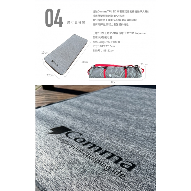 • 逗點Comma TPU床墊 充氣床 80x200cm-單人S號【露營狼】【露營生活好物網】