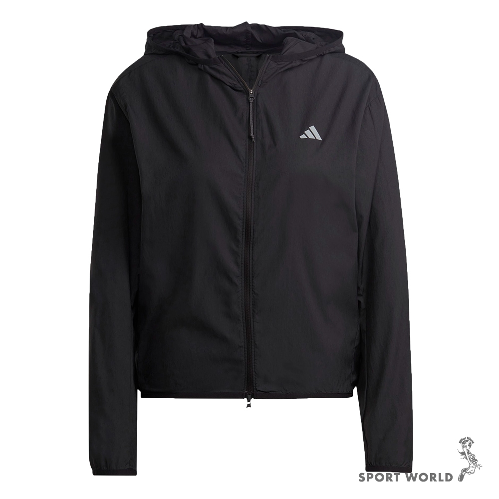 Adidas 連帽外套 女裝 防風 拉鍊鑰匙袋 黑【運動世界】HM4288