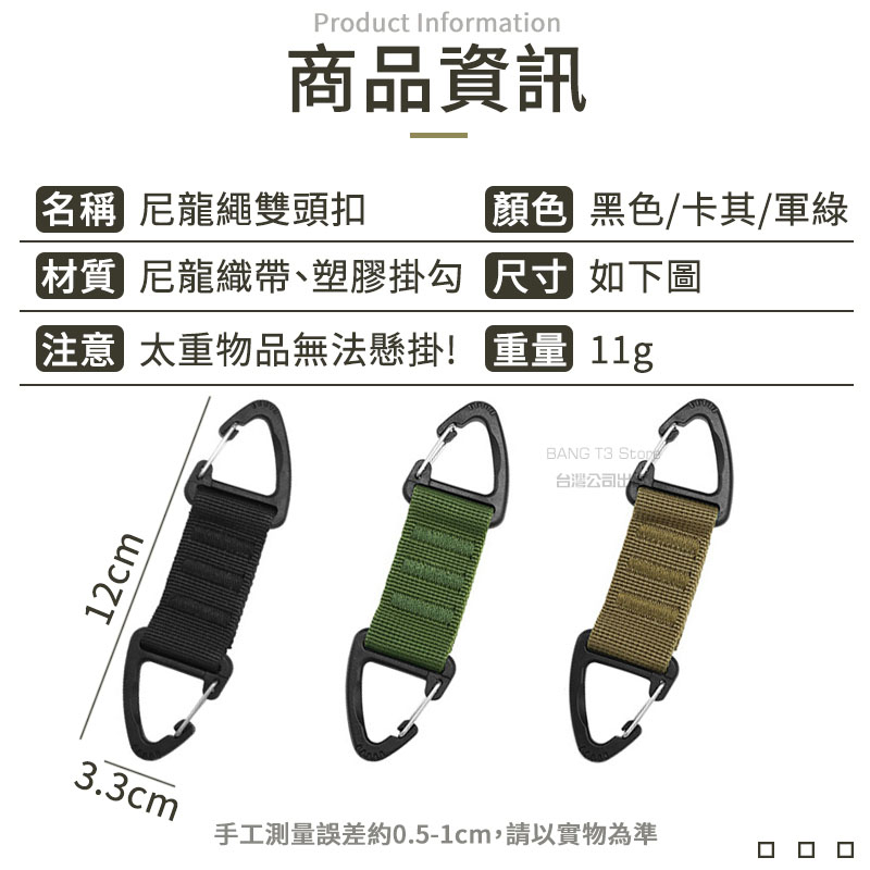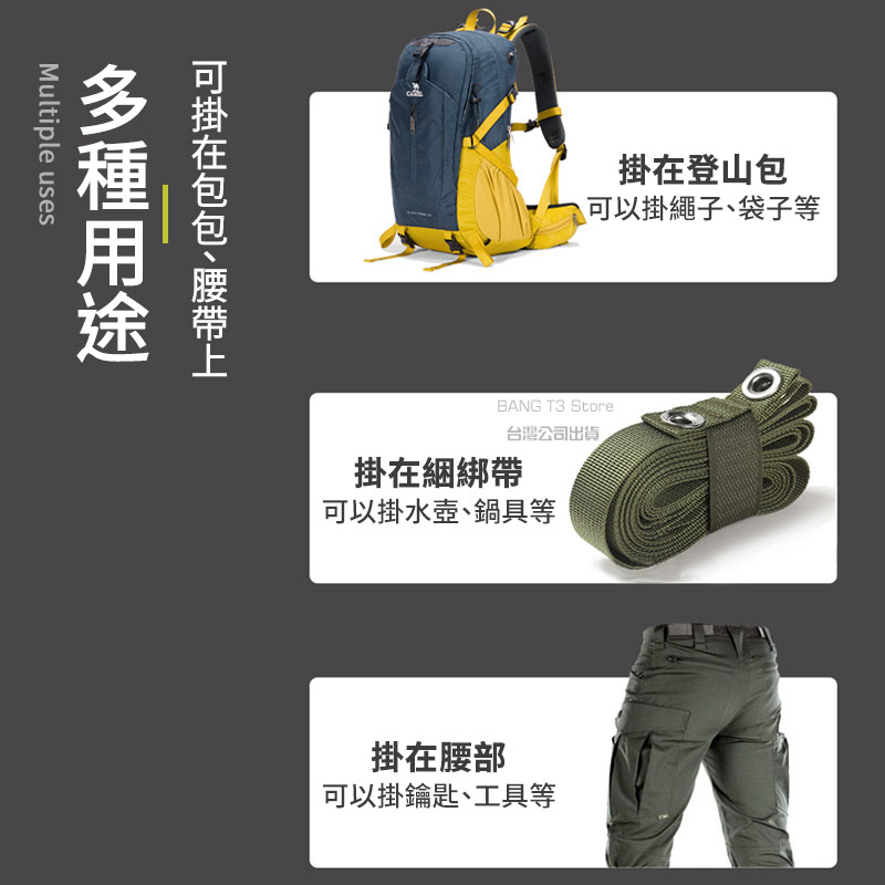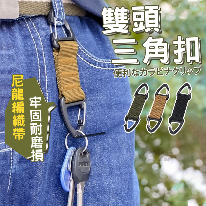 雙頭登山扣 背包扣 登山扣 尼龍繩 三角扣 台灣出貨 免運 露營 皮帶掛扣 登山用品 鑰匙鉤 掛勾【HO15】軍綠|黑|卡其Camping & HikingBANG 潮流男女裝服飾、流行生活百貨專賣