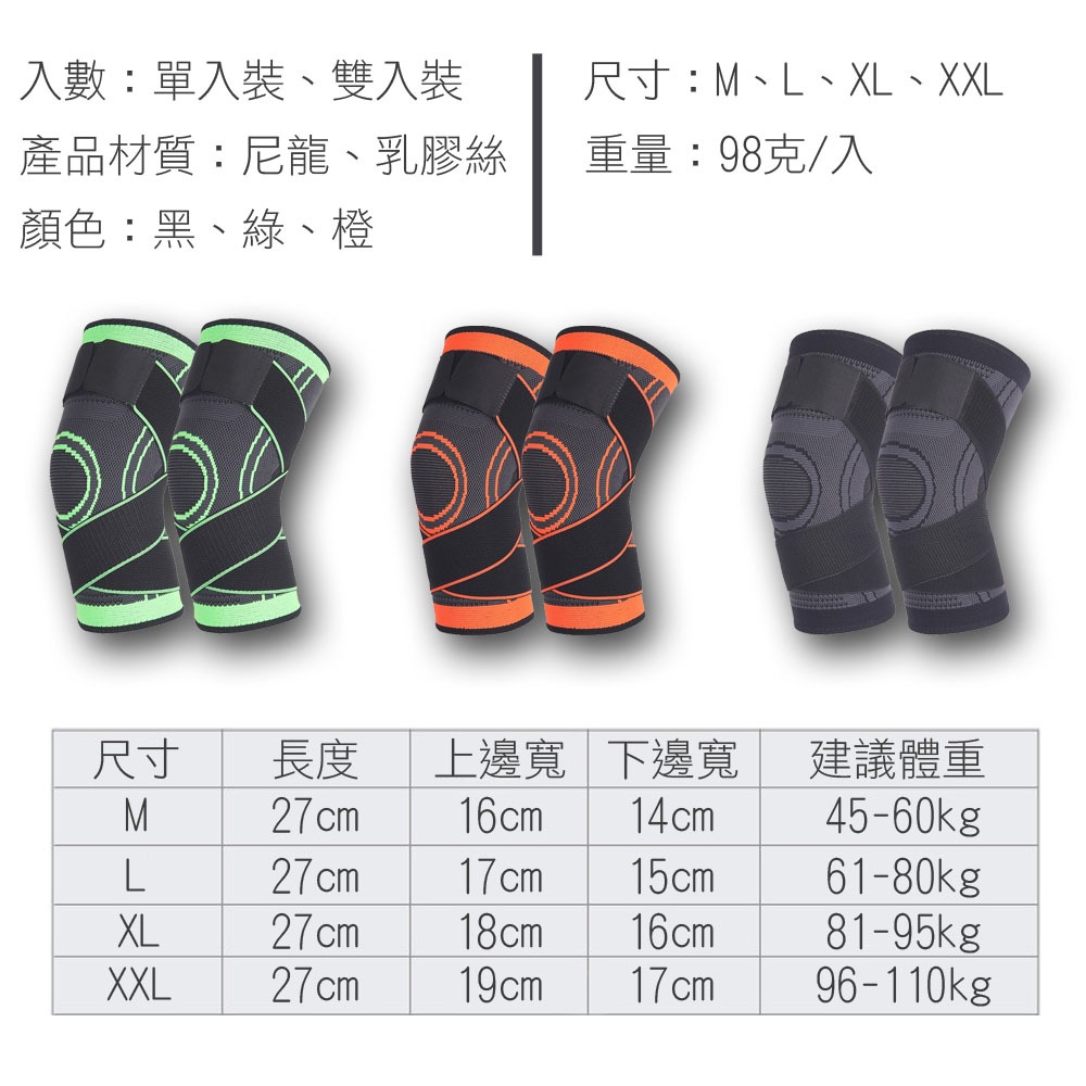 高防護運動護膝|彈力加壓 二代升級綁帶加壓護膝 膝關節 復健護膝 支撐條 膝蓋保護 專業加壓護膝 戶外健身保護黑色,L【建議體重 81 – 95kg】|黑色,XL【建議體重 96 – 110kg】|黑色,S【建議體重 45 – 60kg】|黑色,M【建議體重 61 – 80kg】Gym Protective Gears【九鶴戶外】加重背心 運動沙袋/沙包 軟式啞鈴 運動肌貼/膠帶 拉力圈 運動包包
