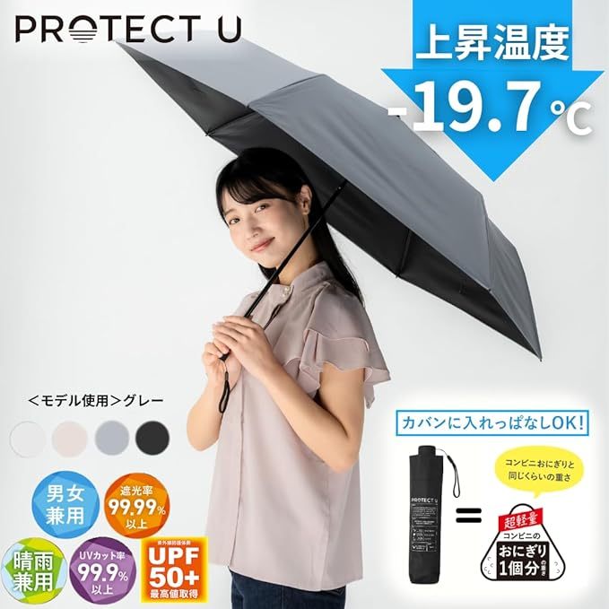 日本在台現貨 晴雨傘 PROTECT U 雨傘-19.7度 防紫外線率99% 2025最新 魚漿夫婦 涼到發寒 陽傘米白|淺灰|紫色|黑色|米色UmbrellasA-More創意
