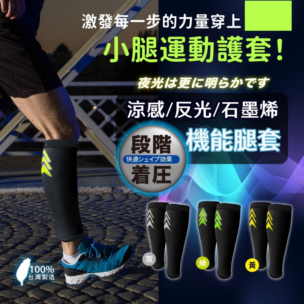 【AMISS】台灣製石墨烯涼感機能腿套 反光腿套 加壓腿套 涼感腿套 運動腿套 夜跑腿套【女款】黑色/螢光黃(1雙)|【女款】黑色/螢光灰(1雙)|【女款】黑色/螢光桃(1雙)|【男款】黑色/螢光黃(1雙)|【男款】黑色/螢光灰(1雙)|【男款】黑色/螢光綠(1雙)Gym Protective GearsAmiss全家人的襪子