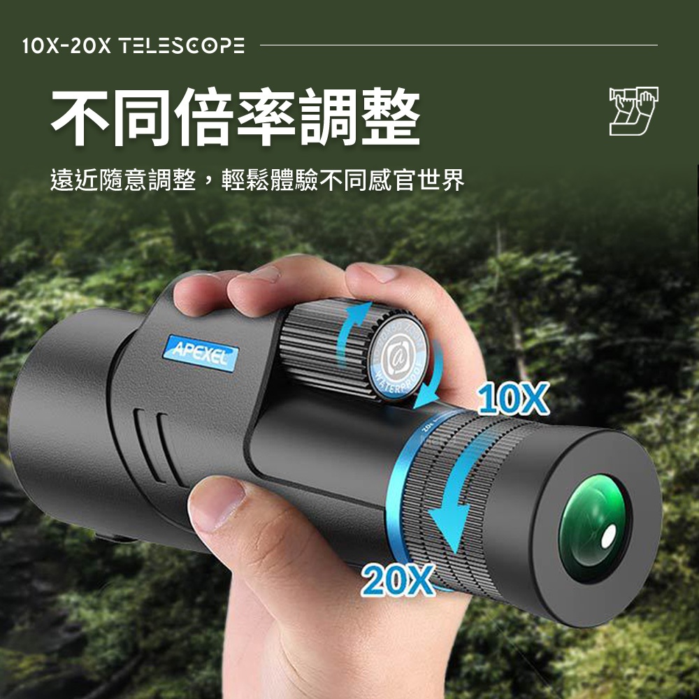 APEXEL 單筒望遠鏡 10-20倍 手機外接鏡頭 演唱會望遠鏡 賞鳥望遠鏡 禮物 長焦鏡頭 望遠鏡 8-24X30綠-無腳架單筒望遠鏡+AP望遠鏡手機夾|綠-含腳架單筒望遠鏡+AP望遠鏡手機夾|綠-無腳架單筒望遠鏡|綠-含腳架單筒望遠鏡|六合一望遠鏡+望遠手機夾含腳架套組|六合一望遠鏡+瞬扣手機夾含腳架套組|六合一望遠鏡+補光瞬扣手機夾含腳架套組|黑-10-20倍單筒望遠鏡|黑-10-20倍+AP望遠鏡手機夾|黑-10-20倍+AP手機夾+JJ09|黑-10-20倍+AP手機夾+JJ020Camping & HikingAPEXEL 旗艦店 | 3C手機周邊 / 望遠鏡 / 微距 / 顯微鏡 /廣角