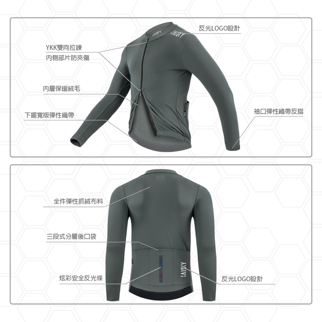 BAISKY百士奇自行車男款雙拉鍊抓絨長車衣 潔淨II 深灰S|M|L|XL|XXLCyclingBAISKY官方旗艦館