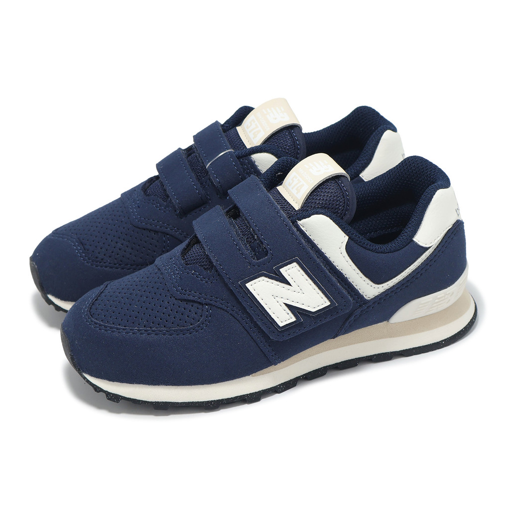 New Balance 童鞋 574 中童 寬楦 藍 白 魔鬼氈 小朋友 麂皮 NB [ACS] PV574BCE-W