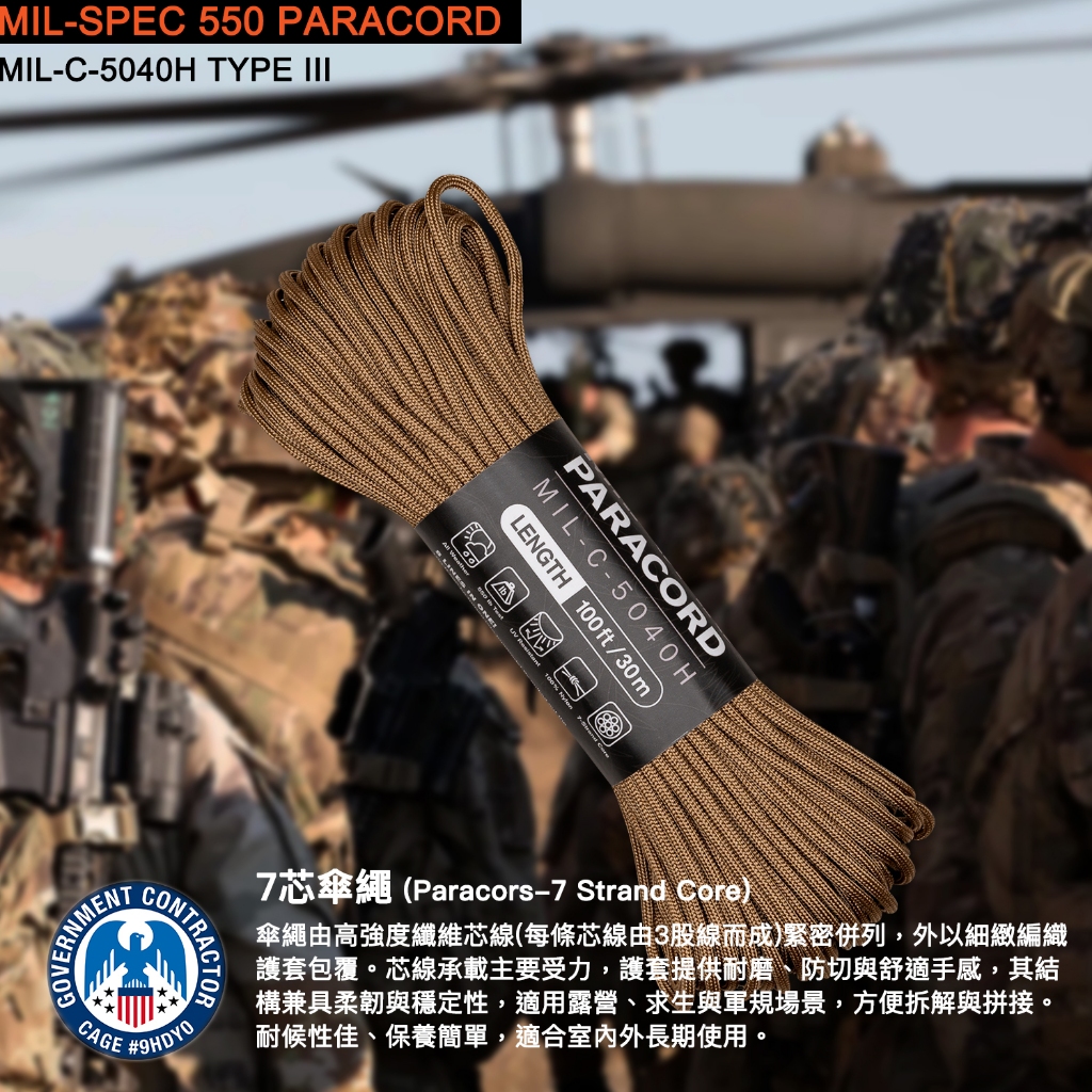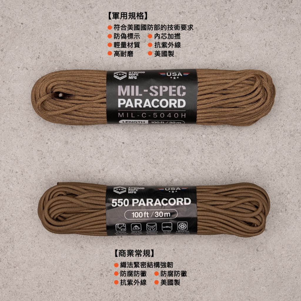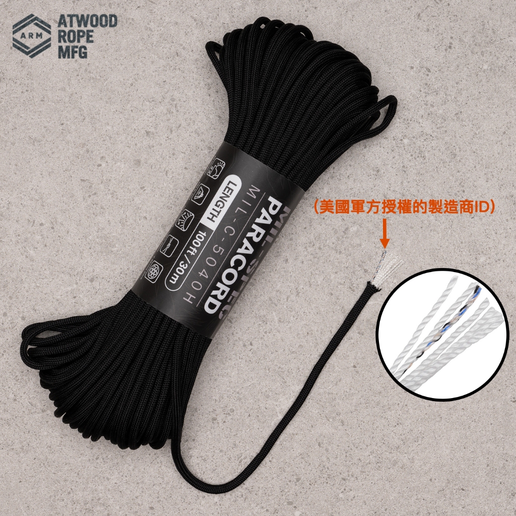 【ATWOOD】Mil-Spec 550 Paracord 美國軍方授權 4mm 550軍規7芯傘繩石墨黑/30公尺(原裝整捆)|狼棕/30公尺(原裝整捆)|橄欖綠/30公尺(原裝整捆)|橄欖綠/90公尺(原裝整捆)Camping & HikingATWOOD ROPES