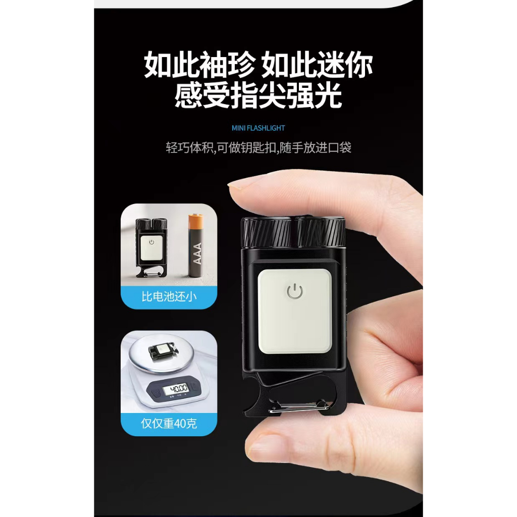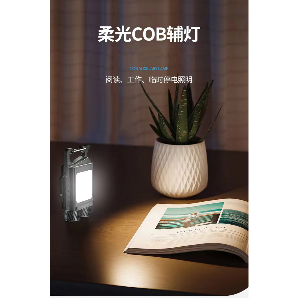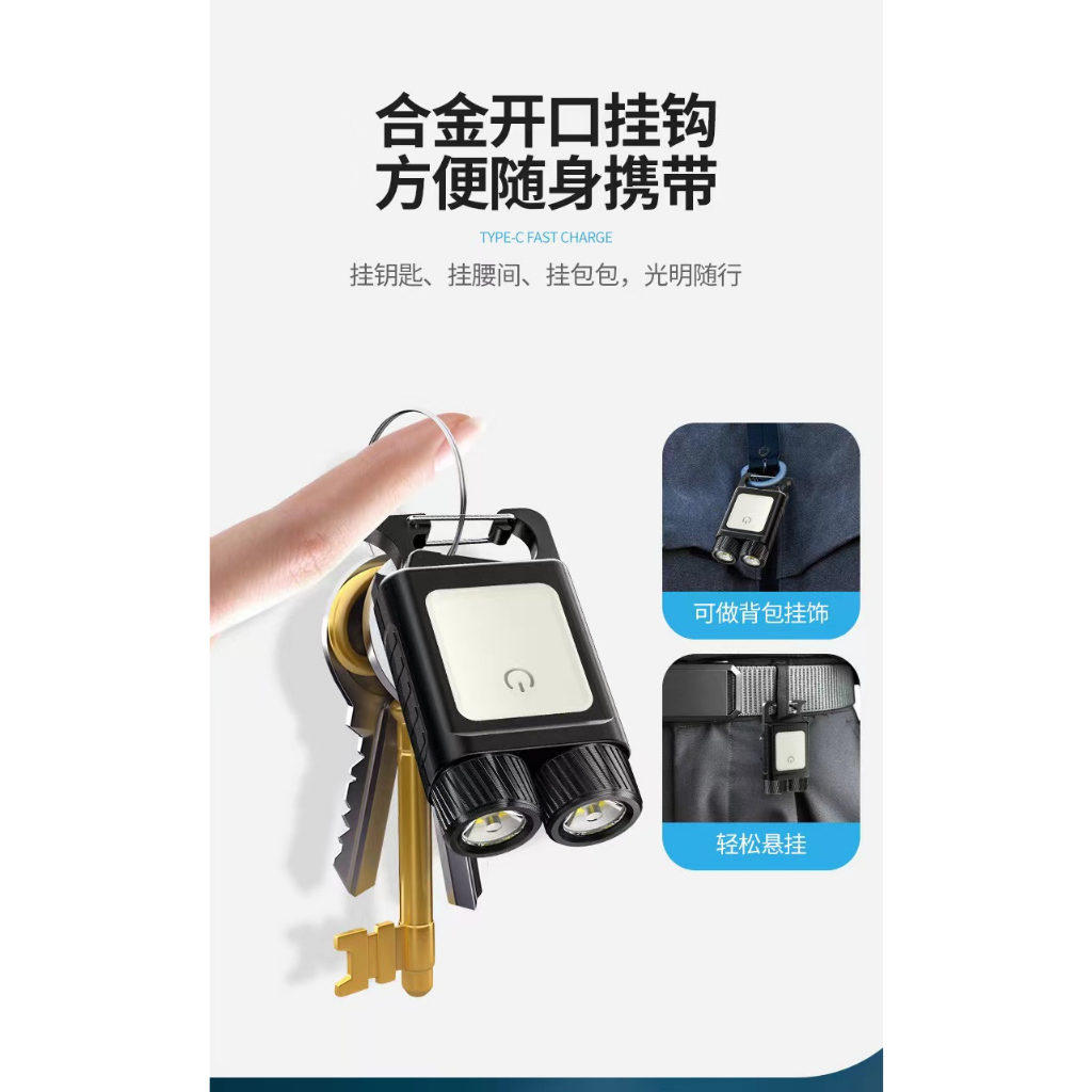 雙光源鑰匙扣燈 USB充電 適用閱讀/工作/臨時照明 鑰匙手電筒 強光多功能探照燈 可掛式露營燈 磁吸手電筒 迷你手電筒
