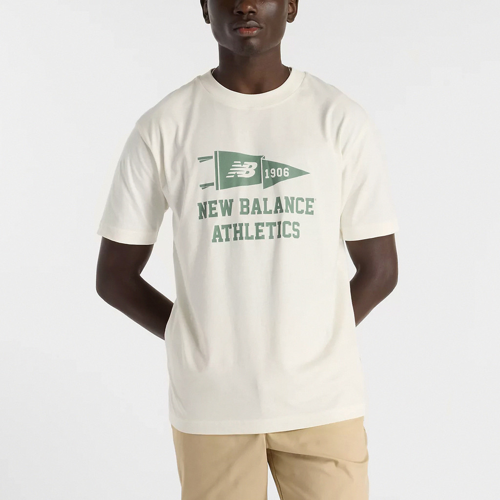 New Balance NB 上衣 Varsity Pennant 米白 短袖 短T 美版 ACS MT51924SSTL|M|XLT-shirtsACS 跨運動 運動品牌專賣