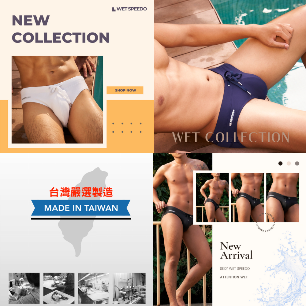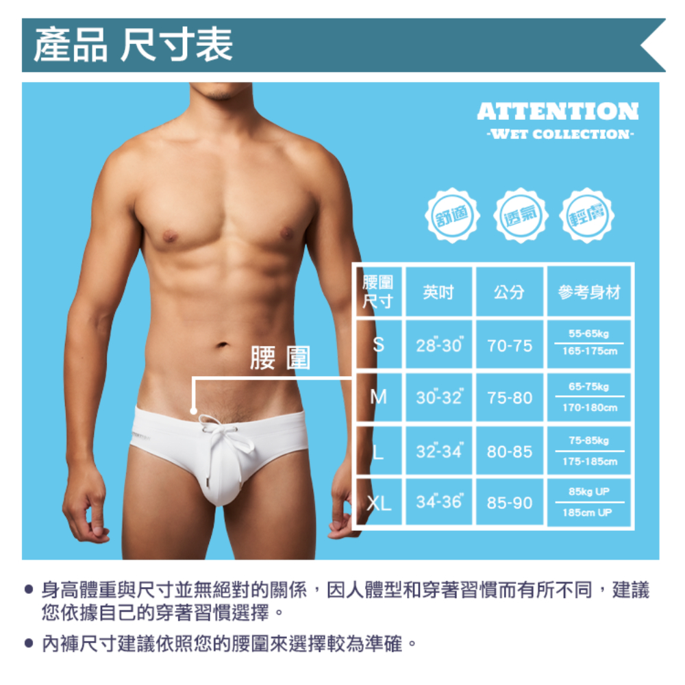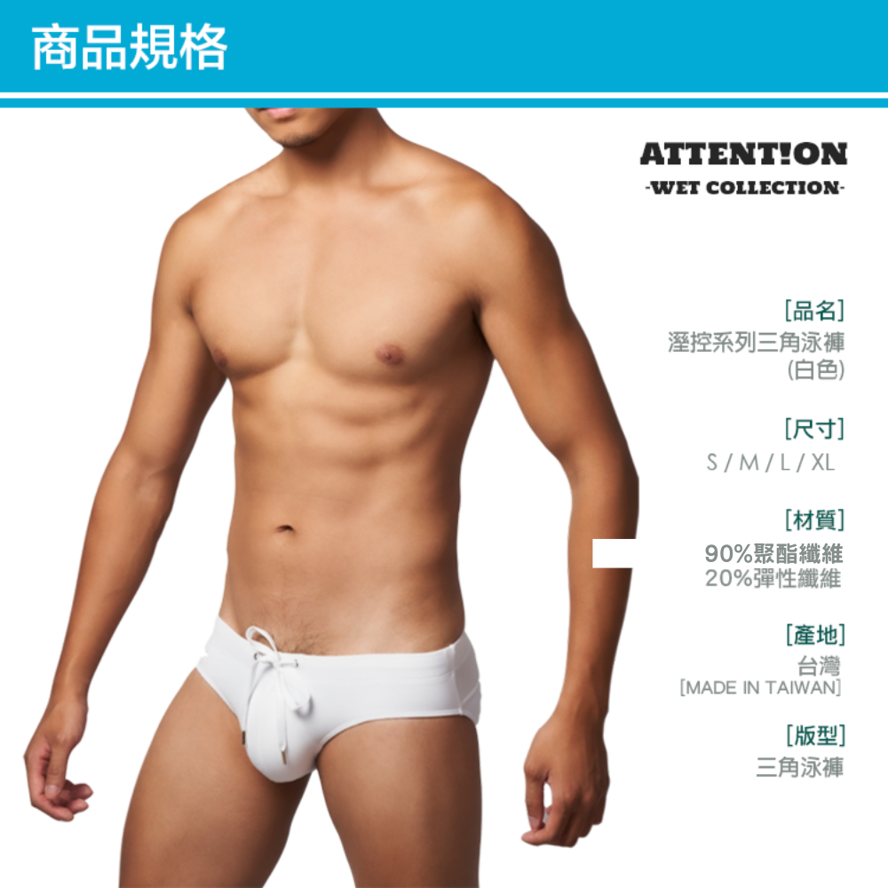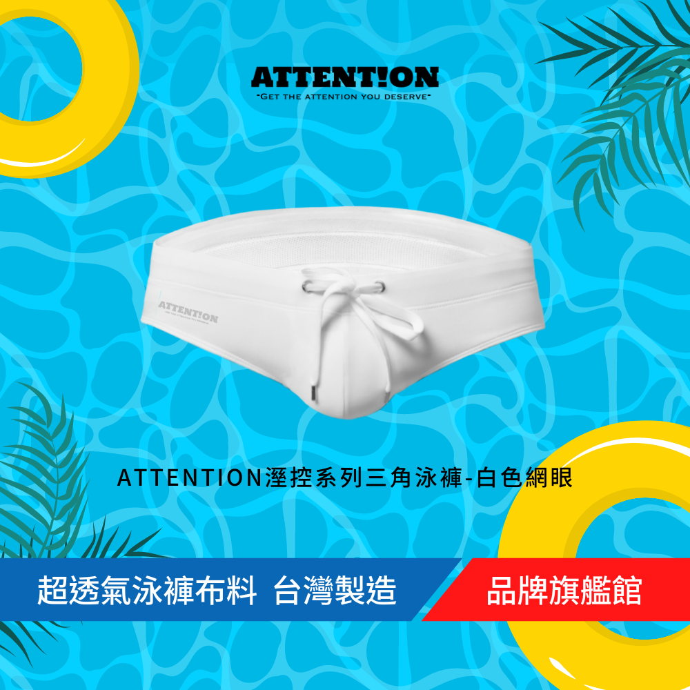 AttentionWear 溼控系列三角泳褲【白色網眼】黑/白/深藍 S~XL 網眼透氣 簡約時尚 泡湯 台灣製造 游泳S|M|L|XLSwimming AttireAttentionWear