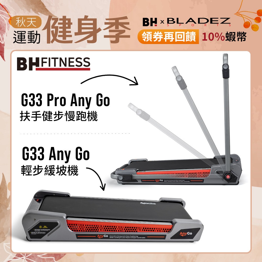 【BH】G33 Any Go輕步緩坡機/G33 Pro Any Go 扶手健步慢跑機(保固一年/5%坡度設計/蜂巢避震)G33 Any Go輕步緩坡機|預購G33 Pro AnyGo扶手健步機Fitness EquipmentBH 歐洲百年品牌 X BLADEZ 旗艦館