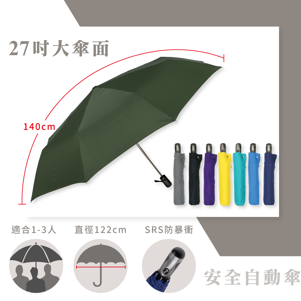 【Hoswa雨洋傘】3人傘/機能加大27吋 安全自動傘 SRS安全防暴衝 折疊傘 抗UV 雨傘陽傘 防風傘-現貨深藍黑色|深藍|紫色|黃色|灰色|土耳其綠|軍綠Umbrellas【Hoswa雨洋傘】官方正版授權文創精品傘